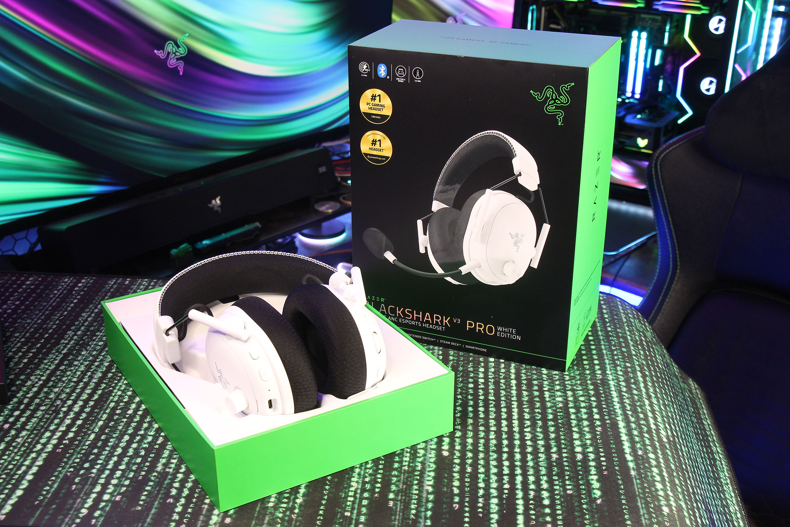 Серия гарнитур BlackShark от Razer зарекомендовала себя как выбор профессиональных киберспортсменов, и новая модель V3 Pro продолжает эту традицию. Это отражается в ее настройках звука, включая специальные профили для определенных игр, и в функциональности, включающей новое поколение протокола связи Razer HyperSpeed Wireless Gen‑2 с обещанной задержкой 10 мс.