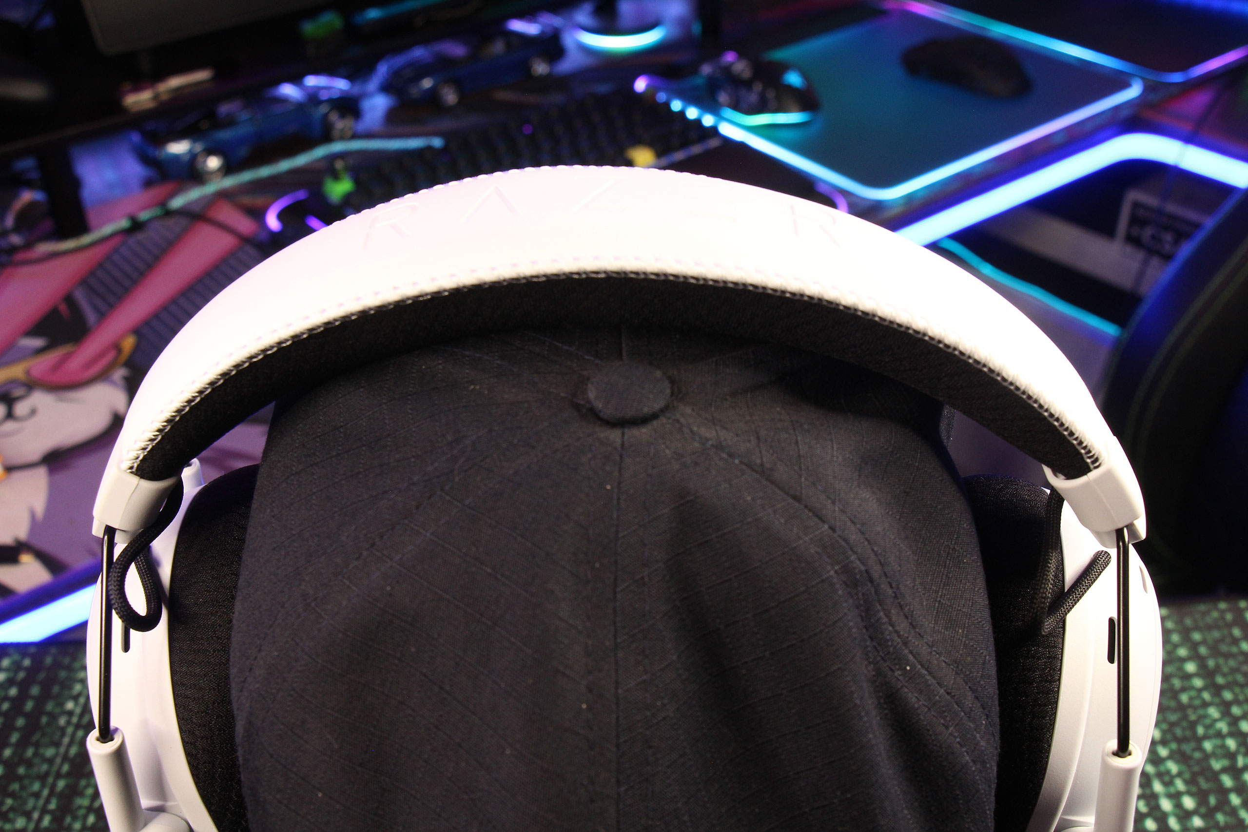 Амбушюры выполнены из фирменного материала FlowKnit memory foam. Внешнее покрытие двухслойное: полноценная работа ANC требует кожаных амбушюров, но ткань более дружественная к ушам. В итоге, Razer использовала оба. Компромисс в том, что «дыхание» ткани нивелируется плотностью кожи под ней, так что в жаркую погоду впечатления от использования, скорее всего, будут чем-то средним между полноценной тканью и кожей. Внутреннее пространство достаточное для большинства типов ушей, а глубина амбушюр позволяет избежать контакта ушей с динамиками.