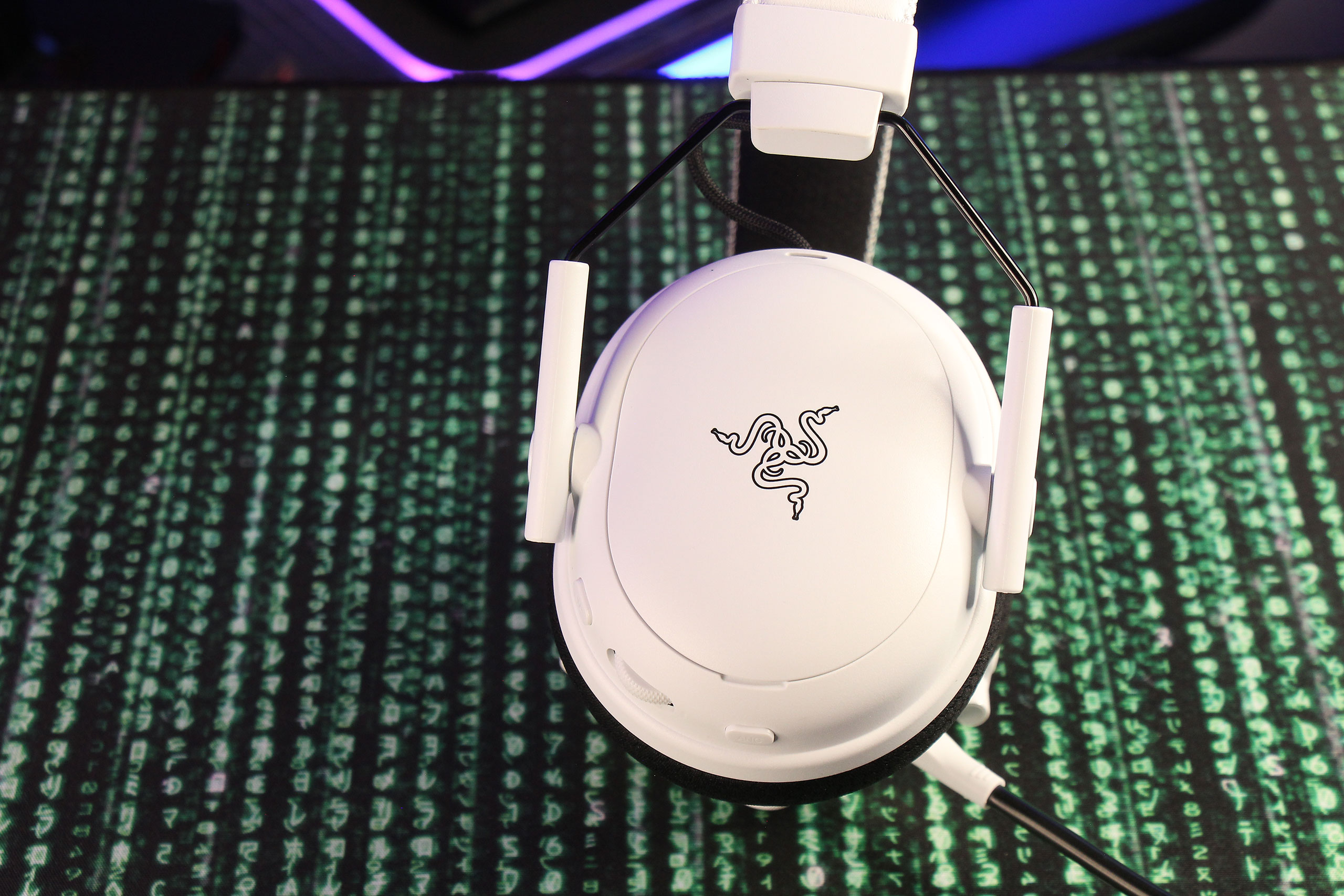 На правой чашке размещены кнопки ANC и переключения режимов, а также колесико. Благодаря ему можно регулировать баланс чата и игрового звука или усиливать громкость шагов, или проверять микрофон — на выбор в ПО Razer Synapse.