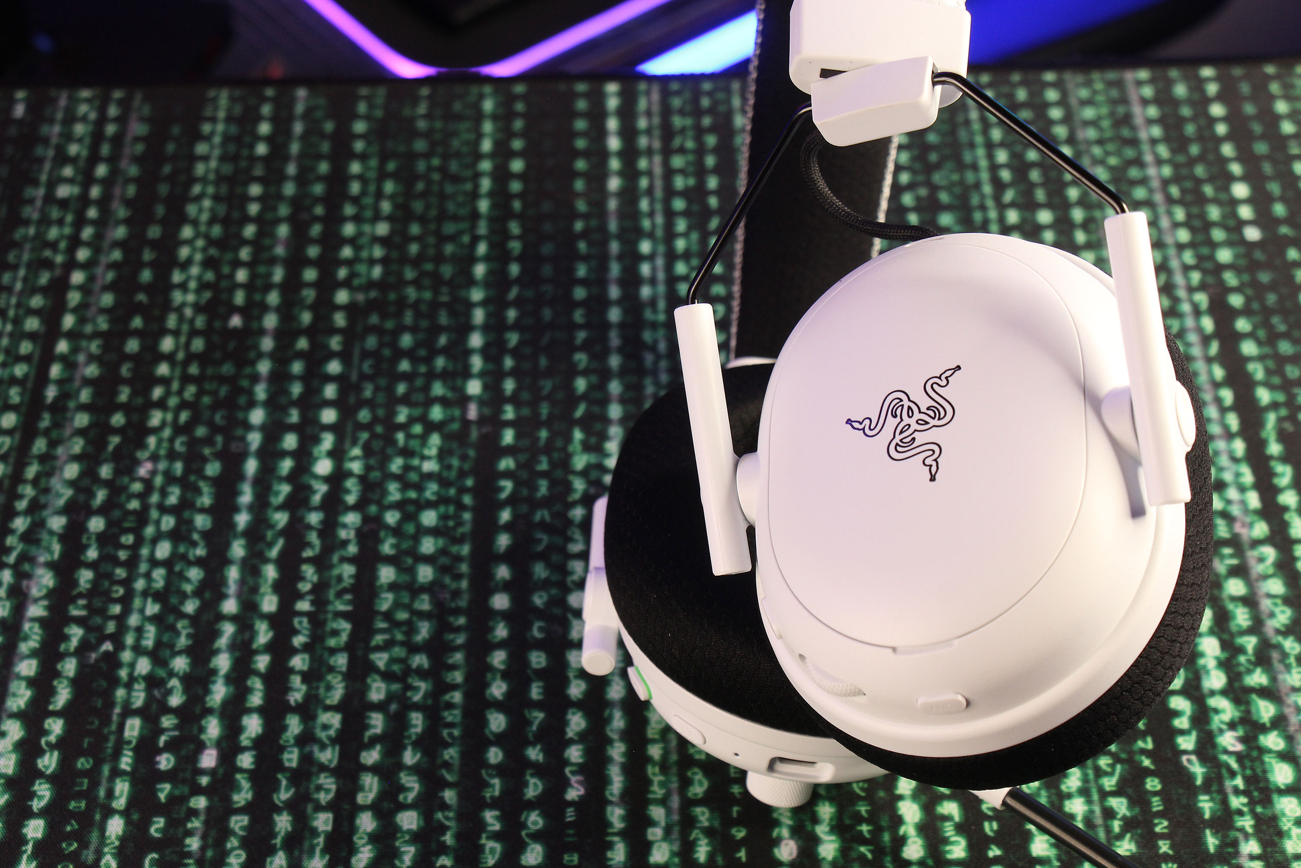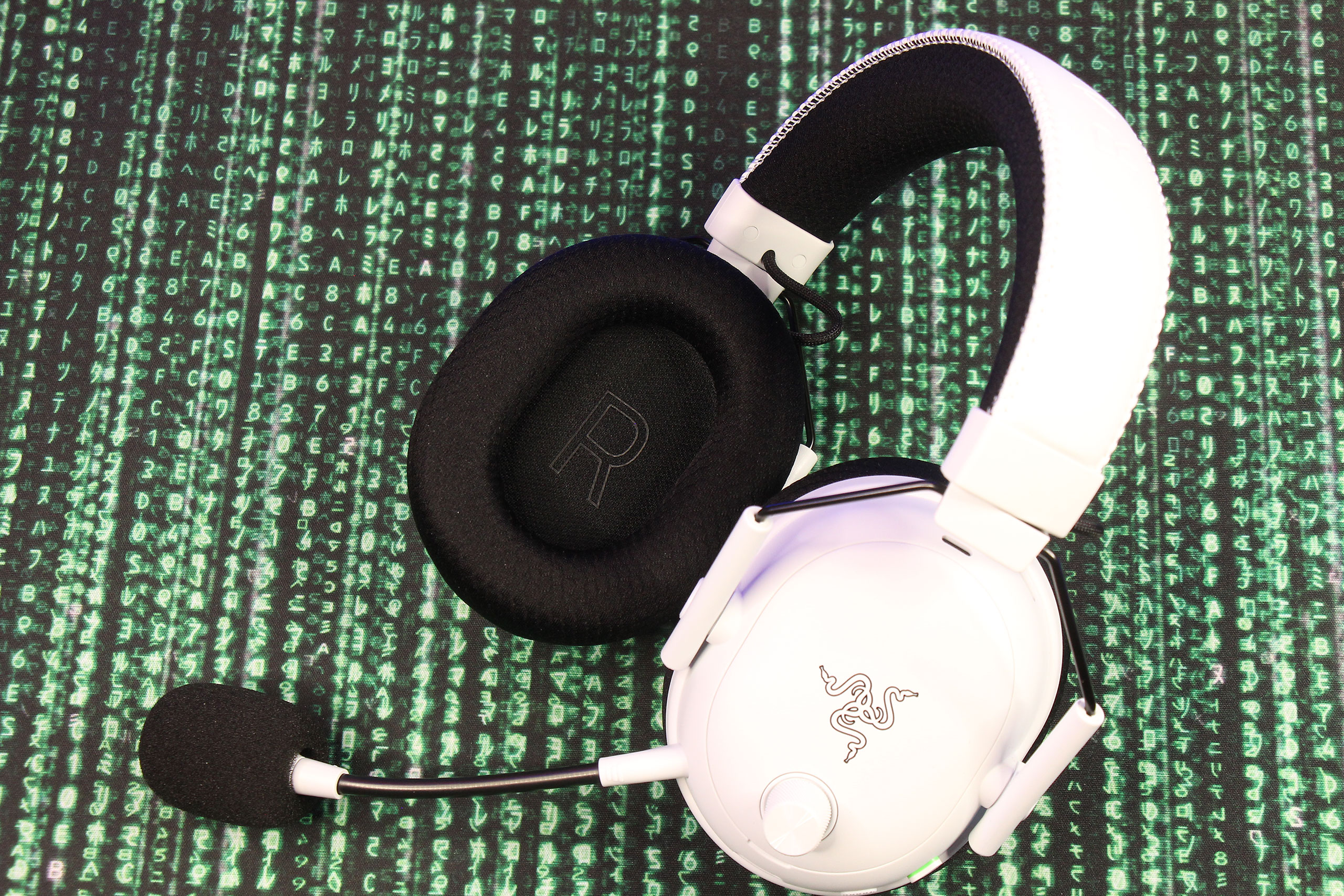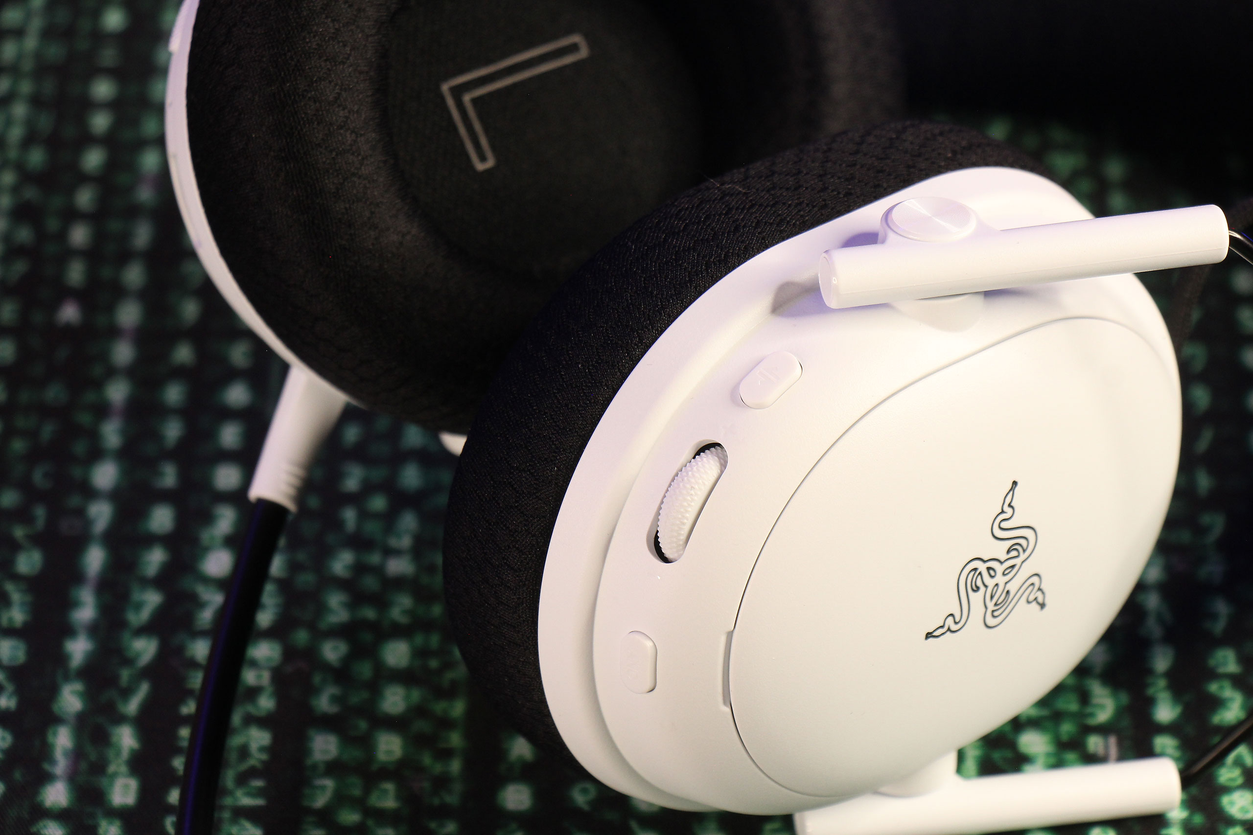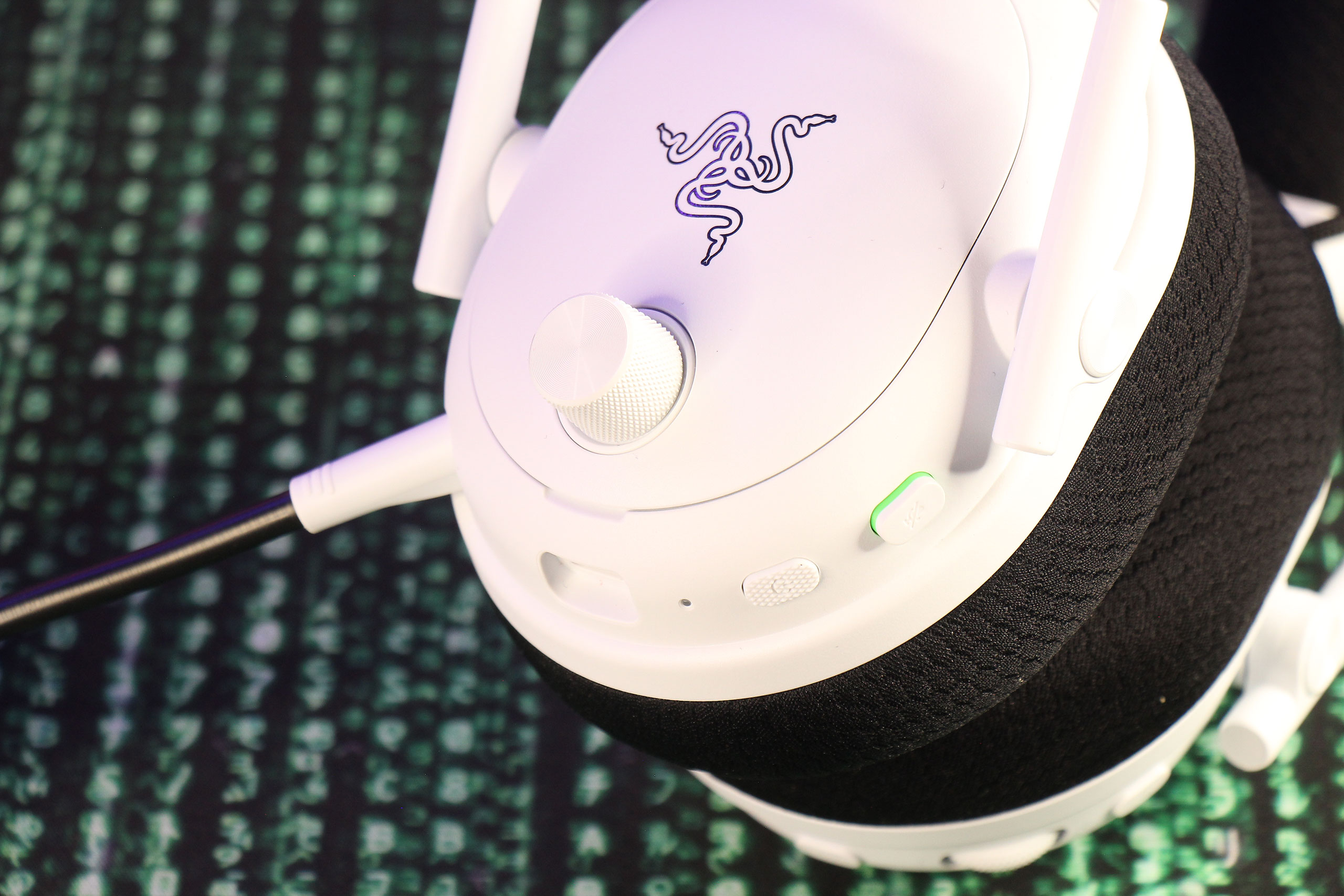 BlackShark V3 Pro сохраняет характерную для серии форму чашек, которая стала визитной карточкой линейки BlackShark и выбивается из общей эстетики Razer вполне сознательно. В первом поколении внешность почти полностью копировала дизайн настоящей гарнитуры для пилотов вертолетов и хоть постепенно ее пришлось адаптировать к пожеланиям пользователей совсем другой модели использования, стиль сохраняется. Скажем, никакой RGB-подсветки. Даже логотип Razer нанесен строгим черным цветом. Как уже понятно, White Edition является белой версией, но при этом не все детали выполнены в этом цвете — часть осталась черной, как и на «обычных» черных BlackShark V3 Pro. Интересно: фирменные зеленые акценты присутствуют только в версии гарнитуры для XBOX. То есть, там они означают не столько фирменный цвет Razer, сколько фирменный цвет консолей Microsoft, ведь третья разновидность для Playstation имеет такие же, но синие акценты в стиле Sony…