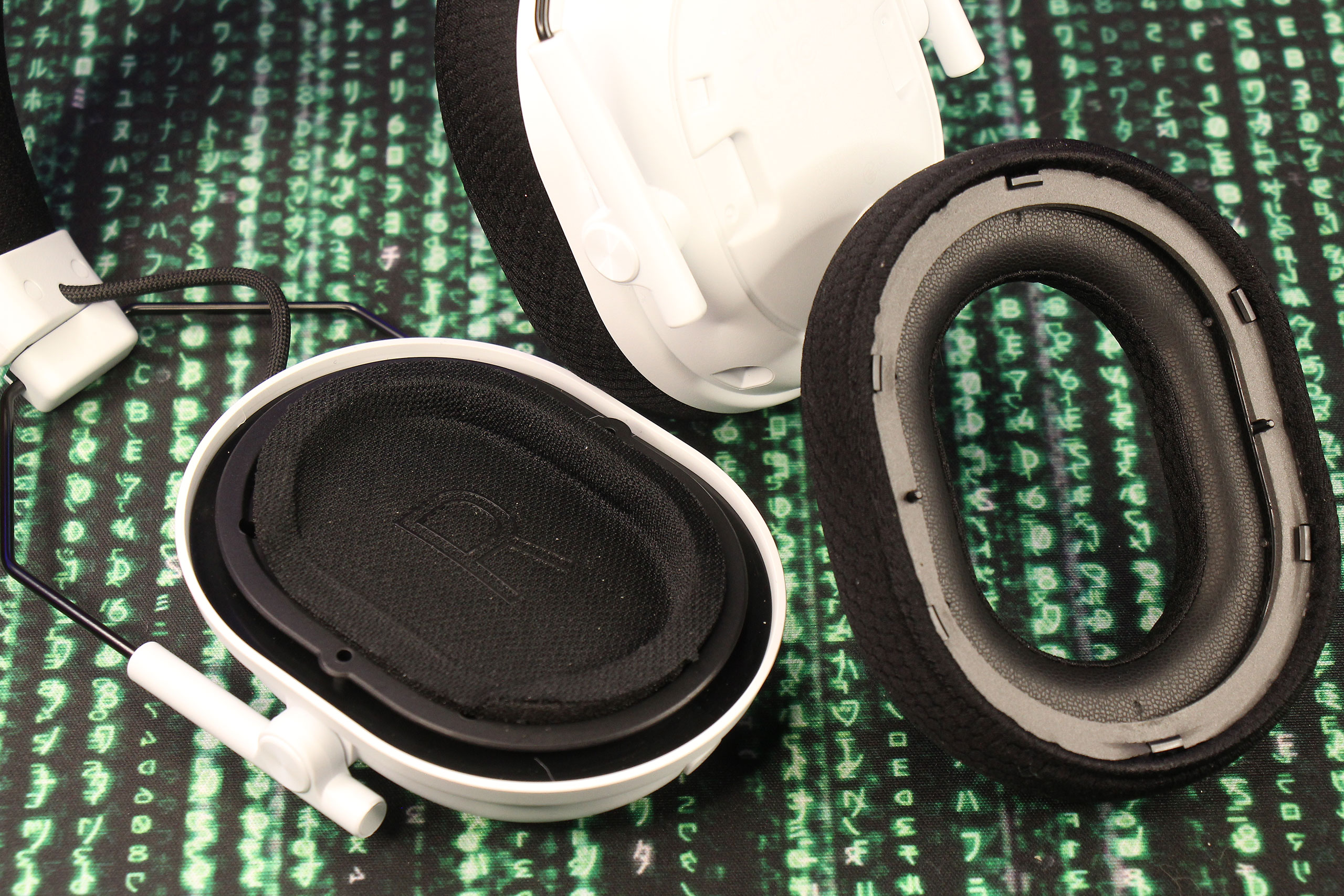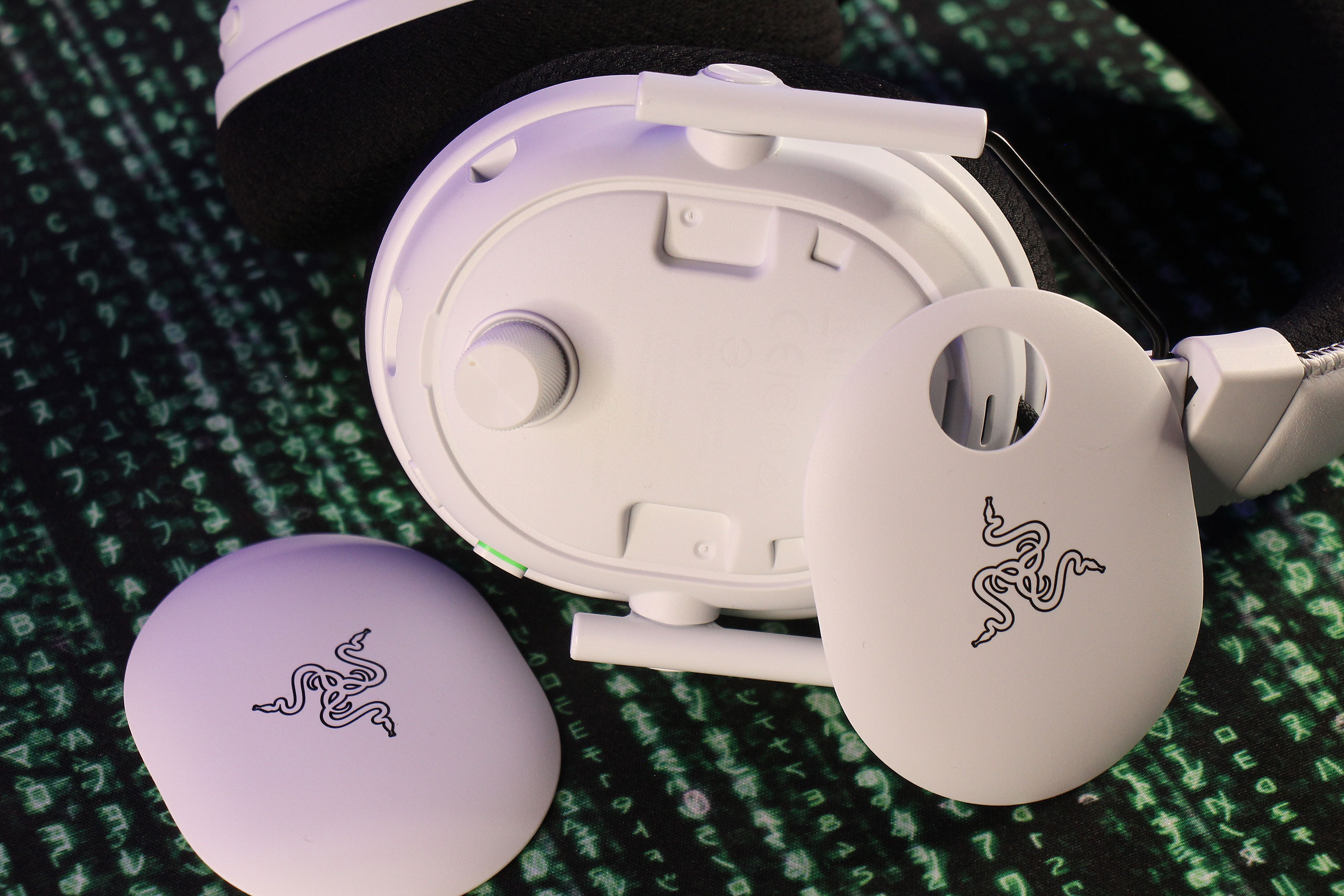 Полноценно разобрать BlackShark V3 Pro не получилось. С одной стороны, началось все очень бодро. Оказалось, что Razer добавила боковые накладки, которые держатся на магнитах, и планирует в дальнейшем предложить для приобретения отдельно их сменные варианты с разными рисунками.