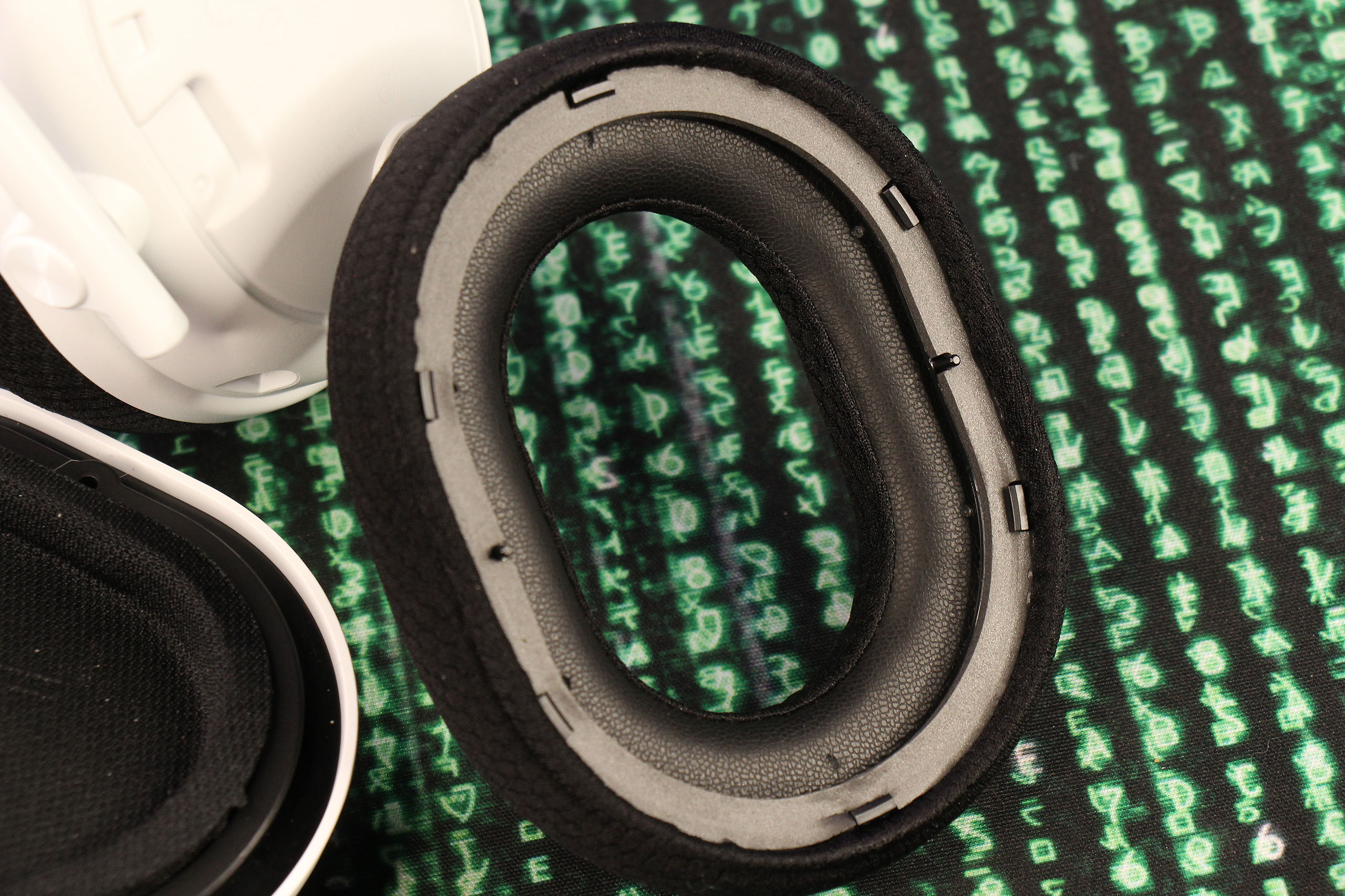 А дальше все оказалось сложнее. Амбушюры снимаются очень специфически, что характерно для моделей с ANC, где плотное прилегание является критичным для работы шумоподавления. И оказалось, что центральная тканевая часть держится на клейкой основе. Чтобы не уничтожать безвозвратно товарный вид образца — от дальнейшей разборки пришлось отказаться.