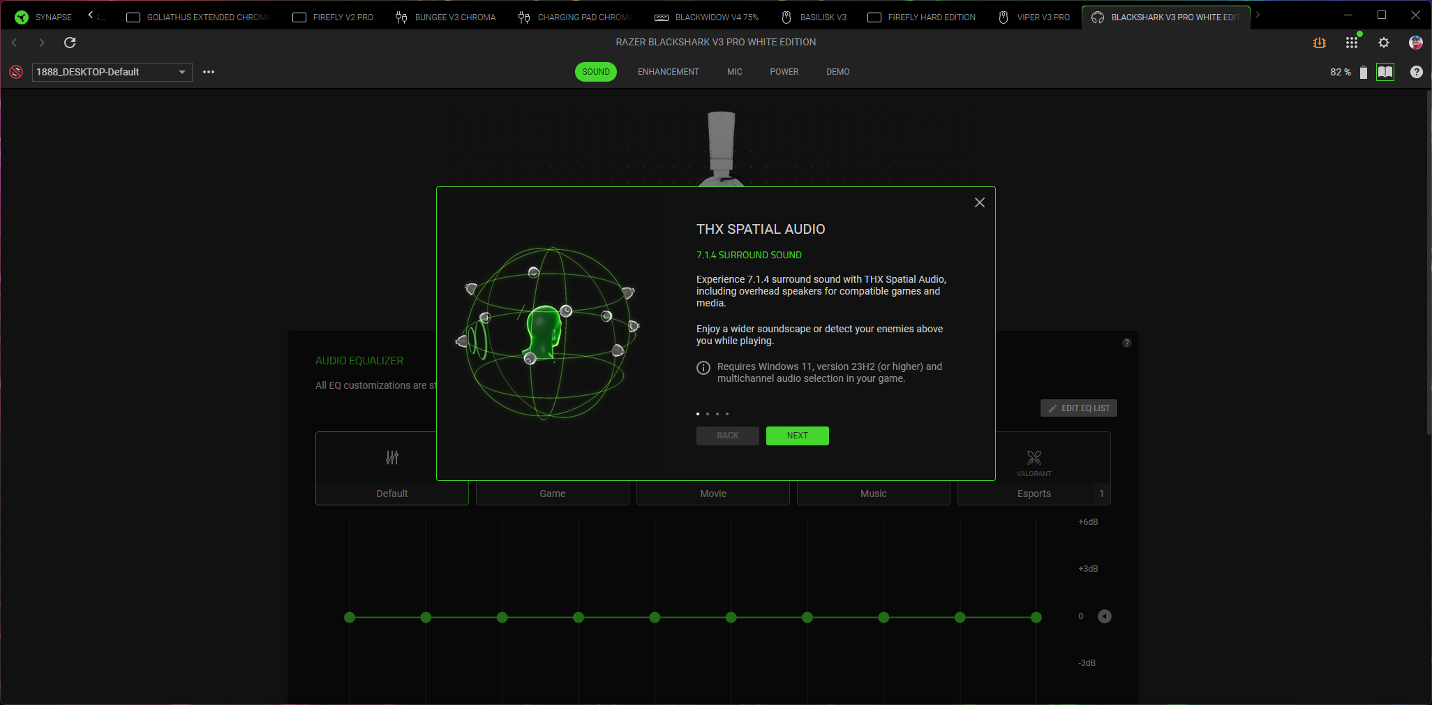 Важнейшая особенность Synapse для BlackShark V3 Pro — это возможность сохранения до девяти профилей непосредственно в памяти гарнитуры. Это означает, что все настройки, включая эквалайзер, улучшения и даже профили THX Spatial Audio, будут работать на любом устройстве без установленного Synapse. Особенно полезно для консольных геймеров, которые не могут установить программное обеспечение на PlayStation или Switch.