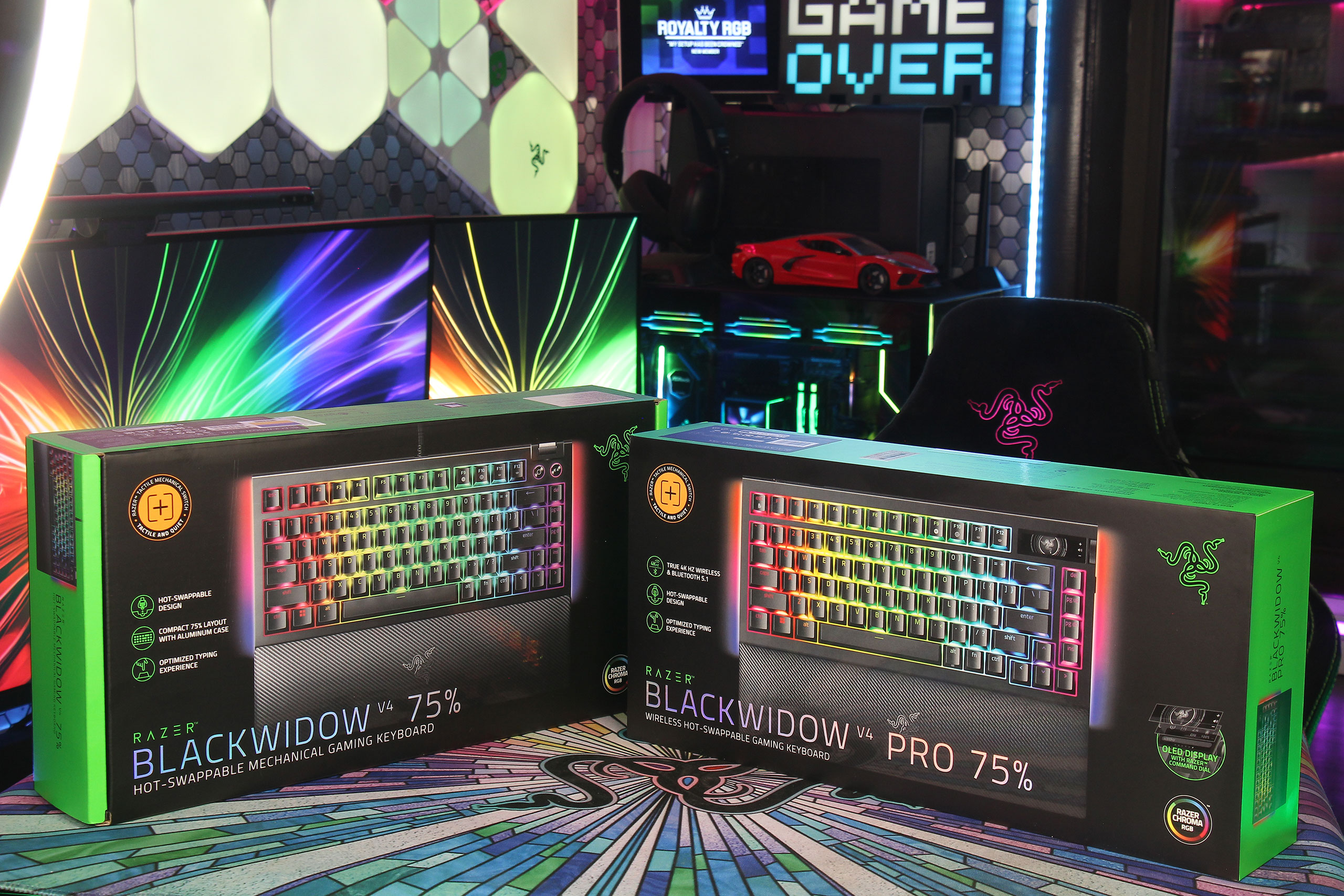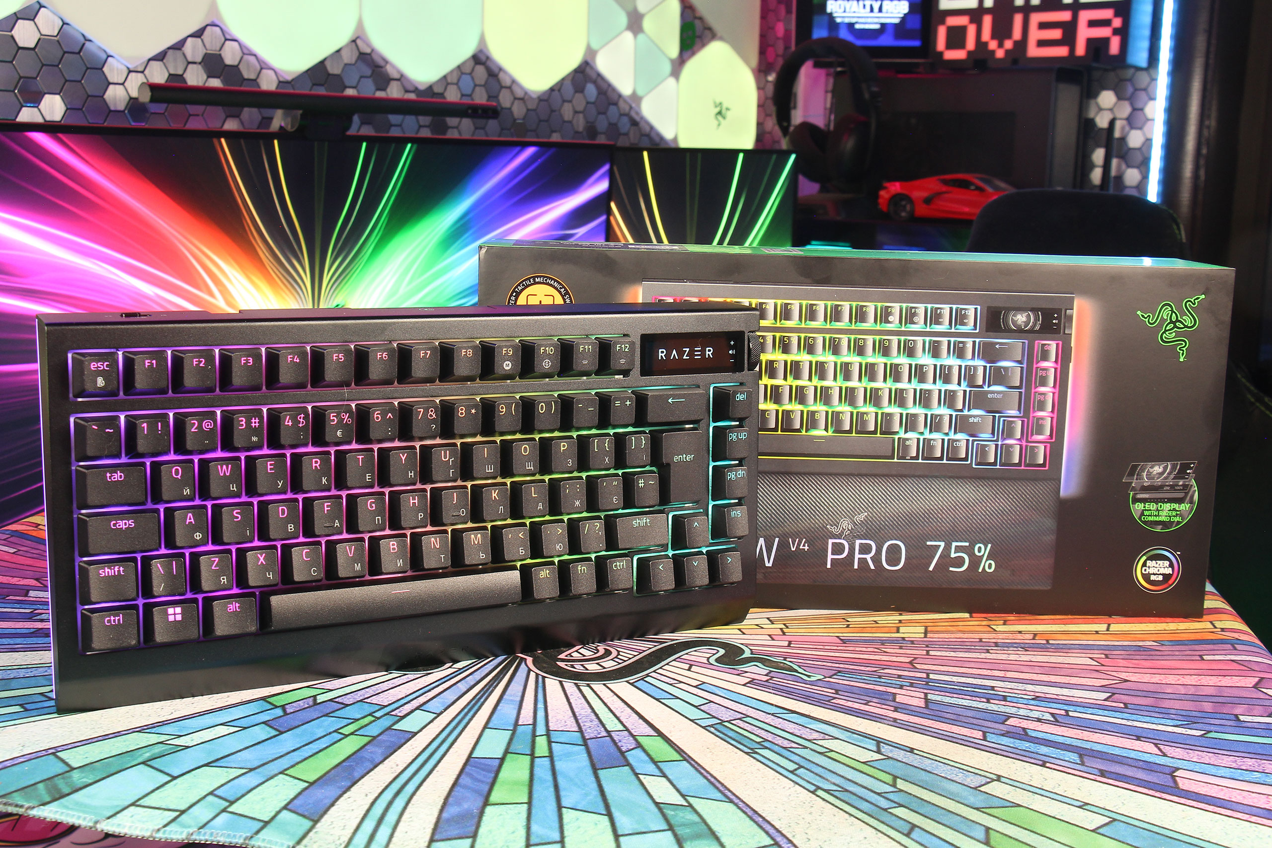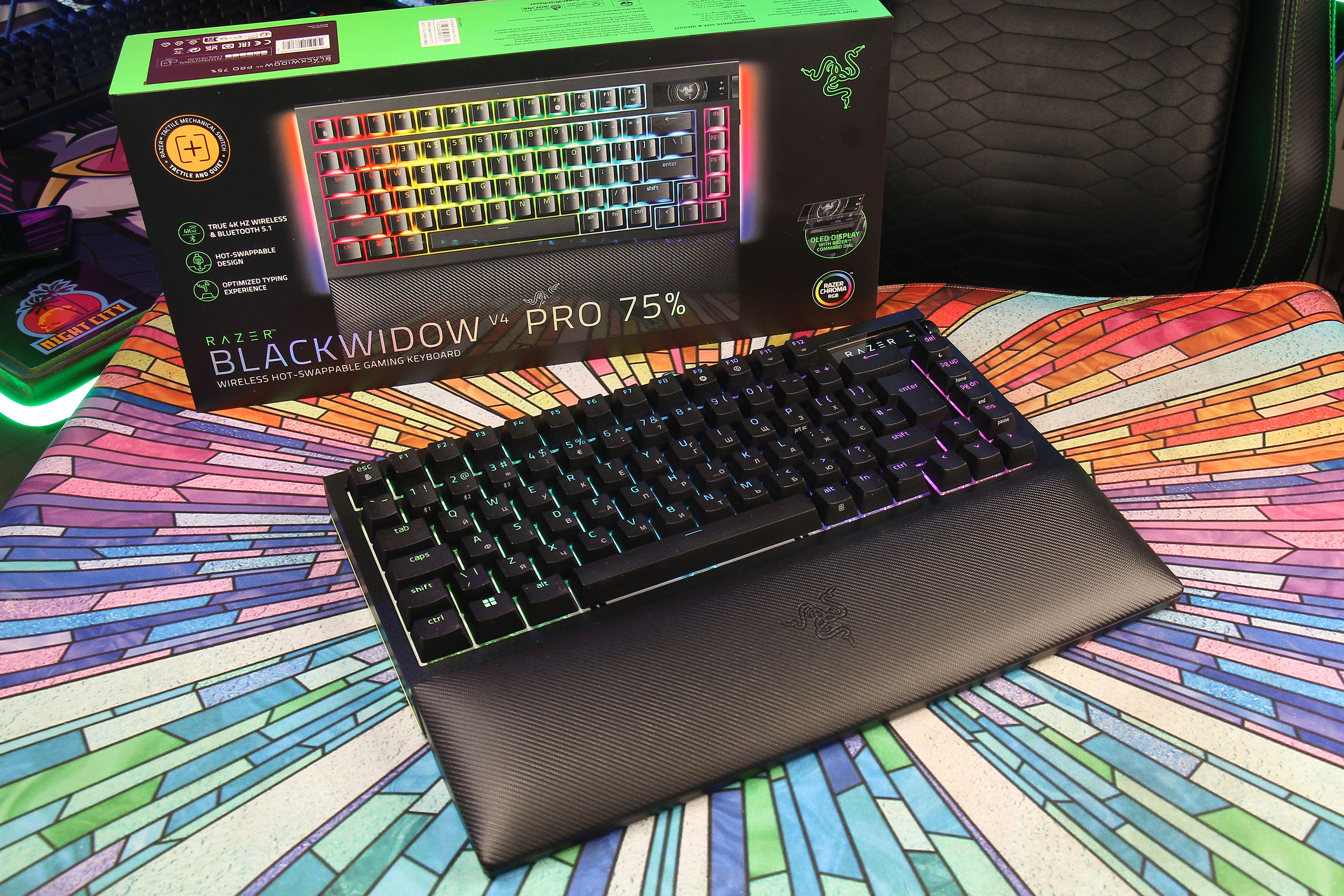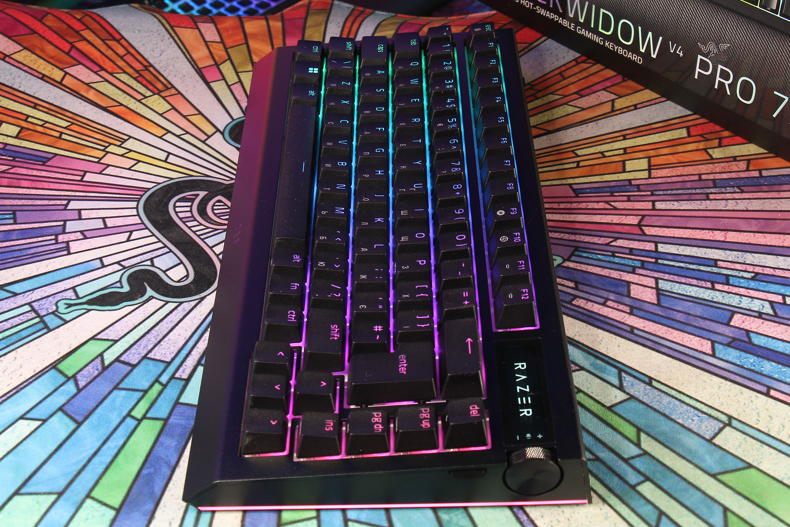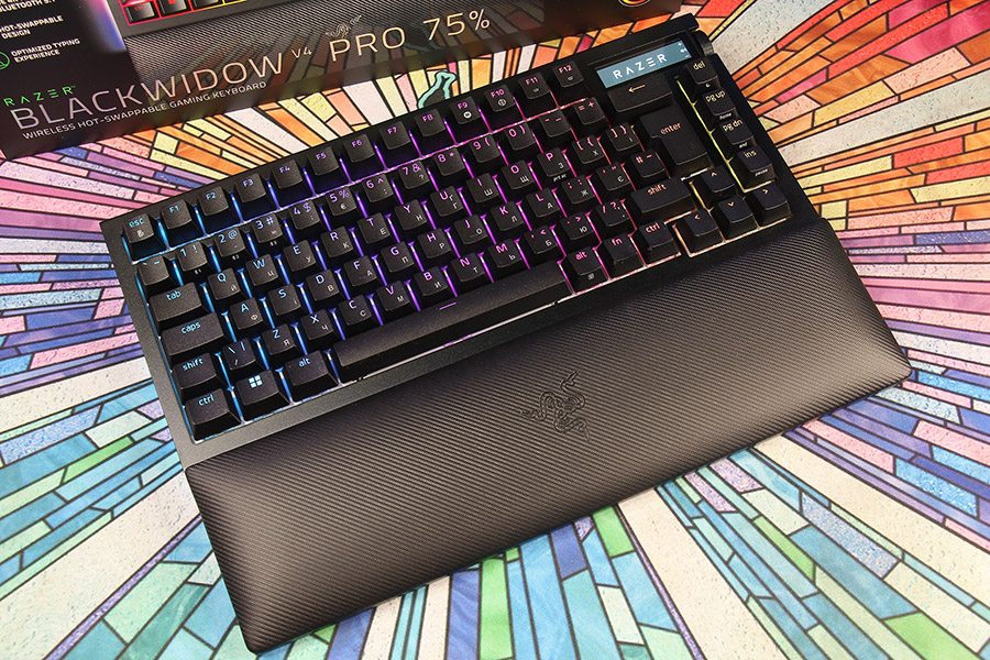 Обычная Blackwidow V4 75% была «мостиком» между геймерскими клавиатурами и кастомными для поклонников Razer. За дополнительную цену Pro-версия не только решает принципиальный вопрос беспроводного подключения, но, как раз, позволяет покупателям не переходить этот «мостик» и вообще не лезть внутрь, теряя гарантию: уже с завода на ней установлены screw-in стабилизаторы и есть вся нужная шумоизоляция. В результате то, что беспокоит 90% тех, кого что-то вообще беспокоит в поведении клавиатуры — решается разрешёнными производителем манипуляциями с переключателями и кейкапами. Для типичной аудитории бренда это может быть даже более интересным приобретением Razer Blackwidow V4 Pro 75%, чем OLED-экранчик…