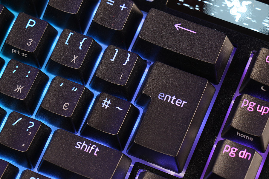 Самое главное, конечно, это тайпинг. Как всегда, общий стиль — «на вкус», поэтому речь идет только об оценке, насколько Razer удалось реализовать именно «тихие, но не бесшумные тактильные» переключатели Orange Gen-3. И стоит сказать, что получилось все замечательно: звучание четкое, без посторонних призвуков и нежелательных резонансов, особенно замечательно себя проявили вкрученные в плату стабилизаторы — длинные клавиши, включая пробел, звучат аналогично основным и не добавляют металлических звуков несмазанных стабилизаторов.
