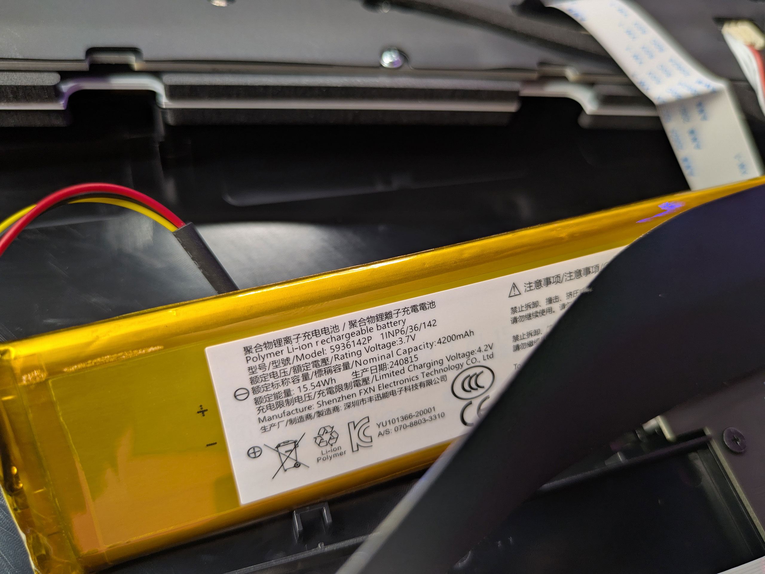 Для питания в беспроводных режимах используется литиевая батарея емкостью 4200 мАч (15,54 Вт⋅ч) производства FXN.