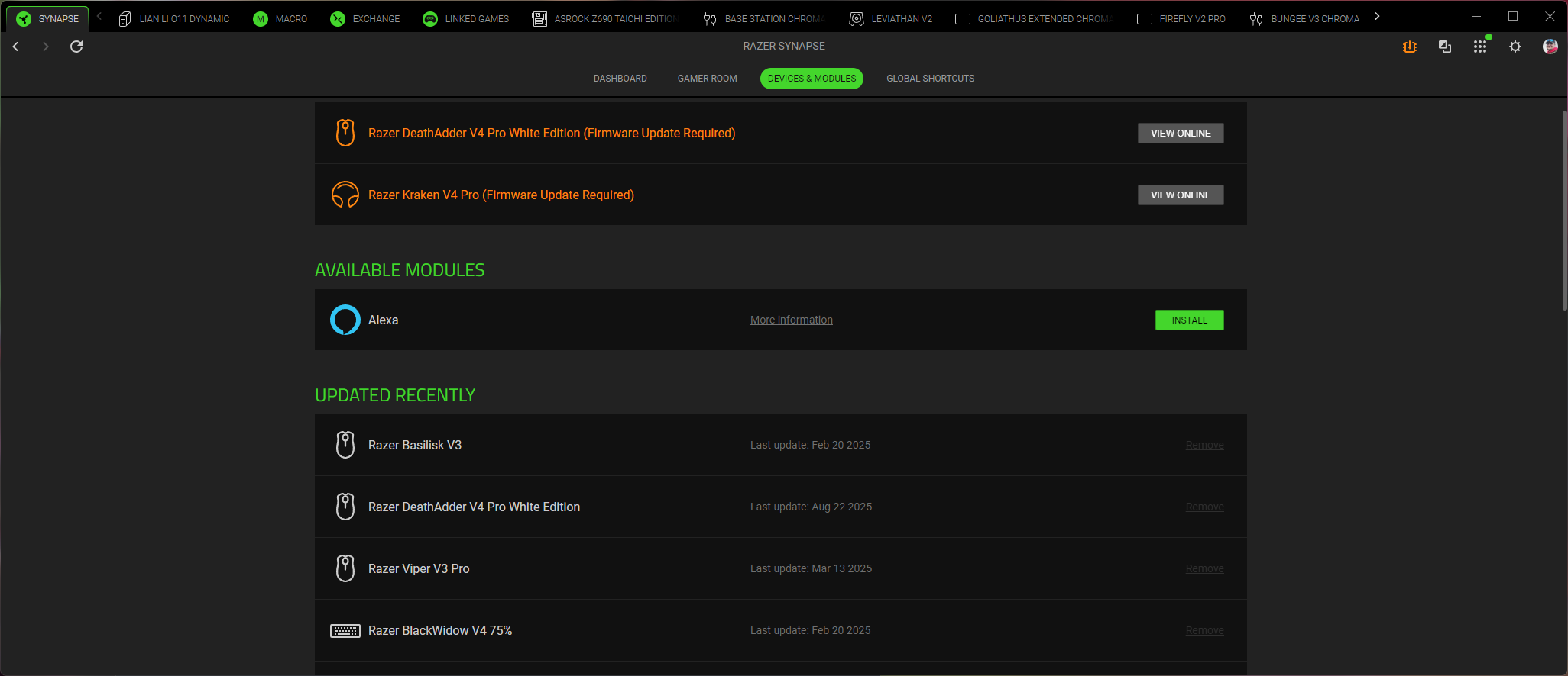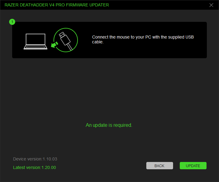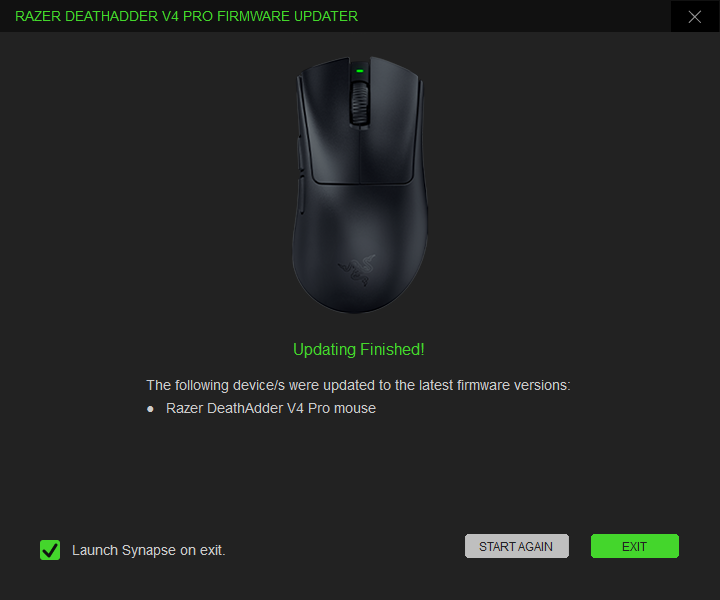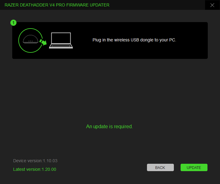 При первом подключении Razer Synapse 4 предложил обновить прошивку мыши и донгла.