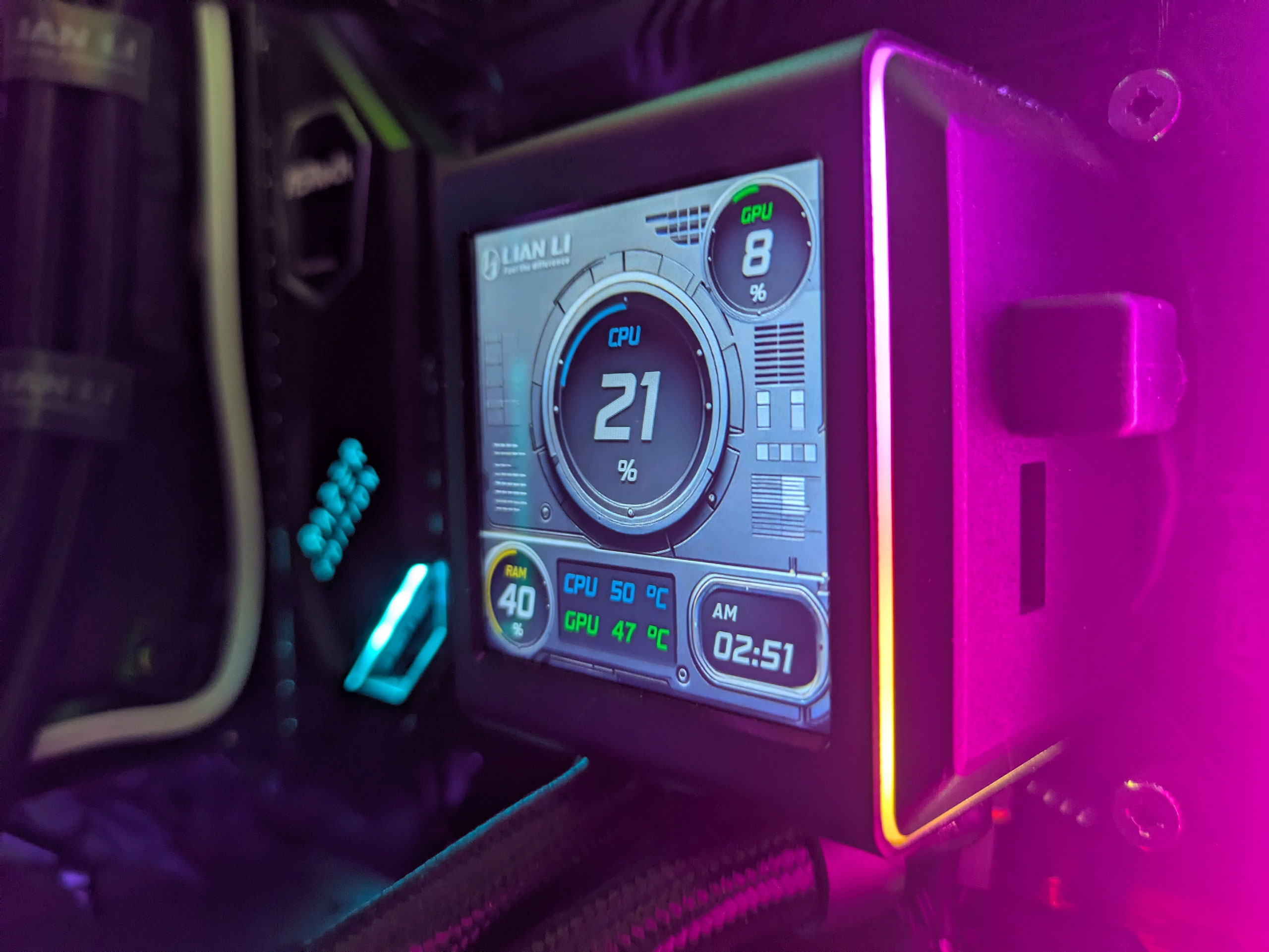 Если добавить ~5%, которые потребляет тестовая система обычно в спокойном состоянии, то при быстрых движениях мышью с частотой обновления 8000 Гц даже на десктопе картинка загрузки на индикаторе в системном блоке становится как-то совсем унылой: