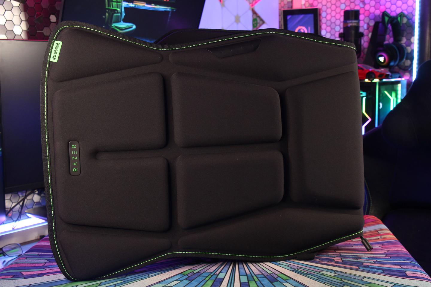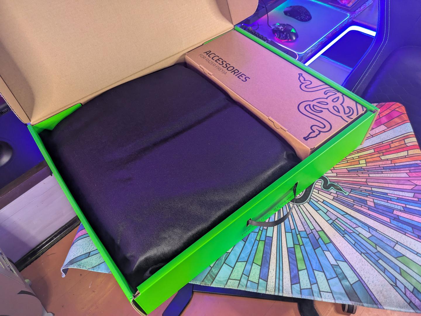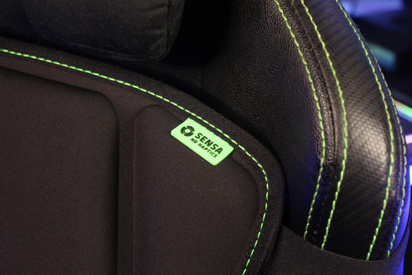 В облике Freyja трудно заподозрить продукт какой-то другой компании, кроме Razer: черная ткань с зелеными декоративными строчками, логотип Razer по центру с зеленой LED-подсветкой и маркировка Sensa в верхнем правом углу.
