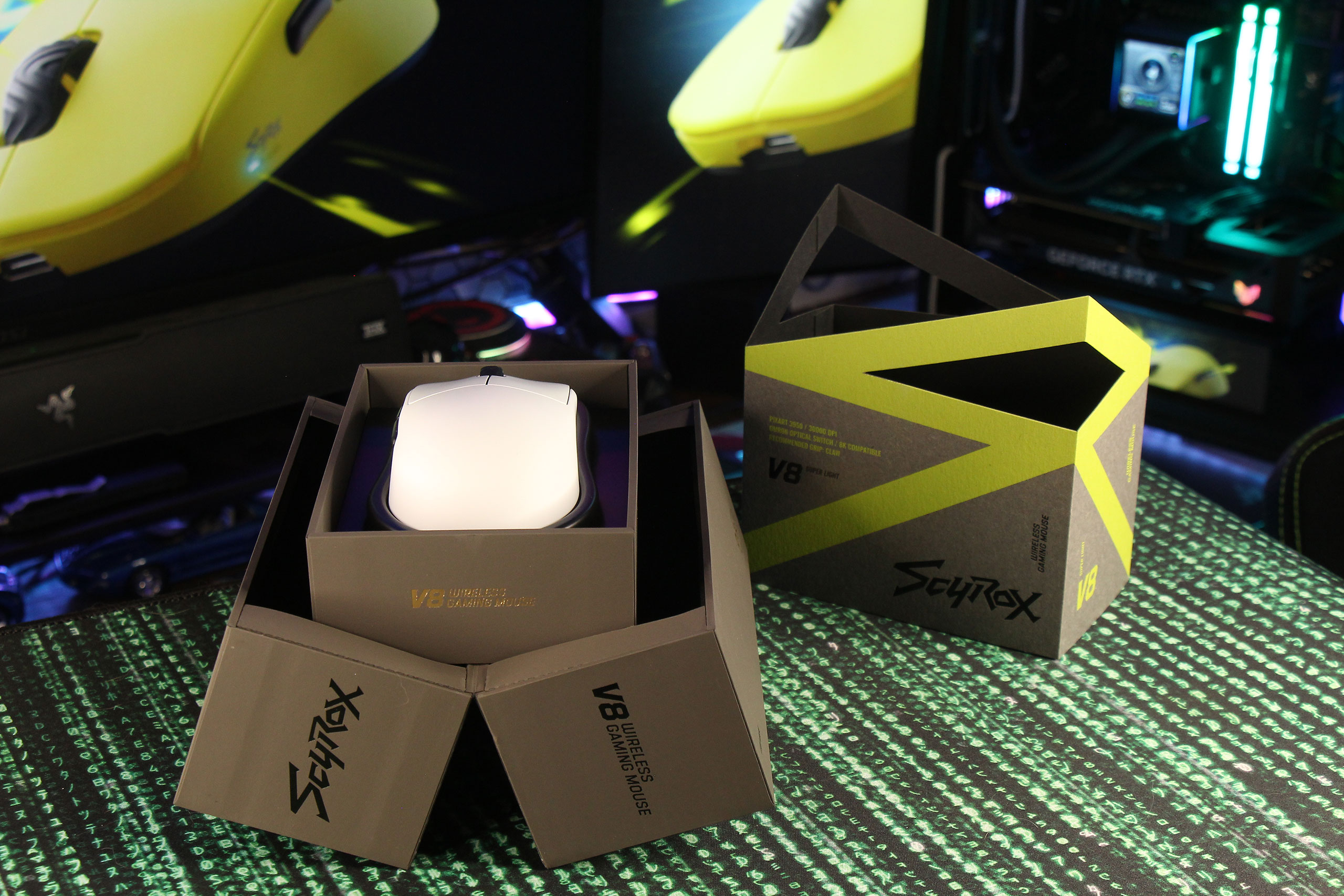 Scyrox V8 поставляется в уникальной pop-up коробке с запатентованным дизайном, который сразу выделяет продукт среди конкурентов. Производитель явно инвестировал во впечатления от распаковки, создав соответствующий опыт несмотря на доступную цену.