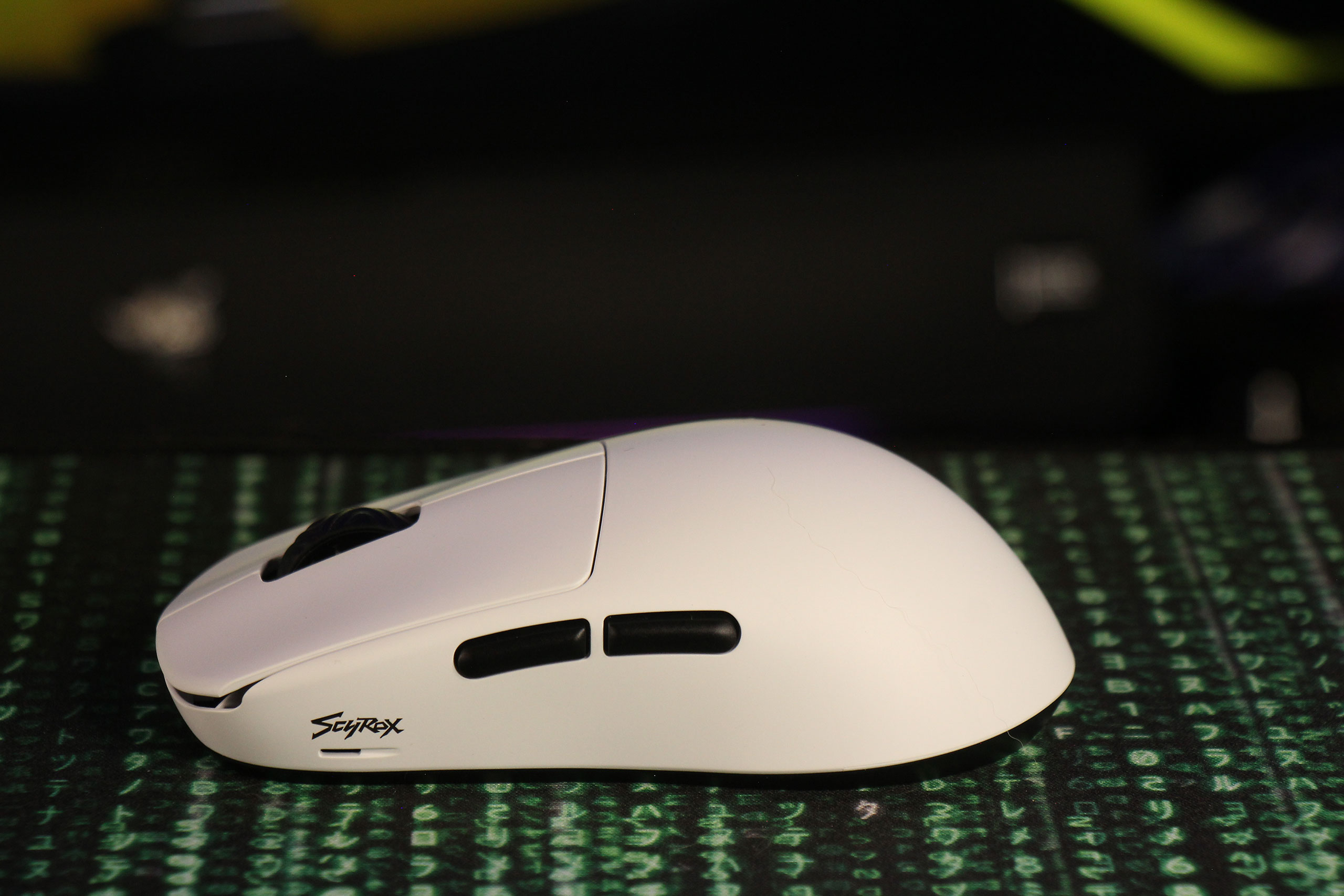 В отличие от многих конкурентов с RGB-фейерверками, Scyrox придерживается минималистичного подхода без подсветки. Это решение помогает экономить вес, батарею и, конечно, средства покупателя. Для тех, кто ищет производительность без лишней мишуры, такой подход выглядит разумным. Единственный светодиод под надписью Scyrox возле места для большого пальца работает как индикатор режима работы и зарядки, но не светится в обычных условиях.