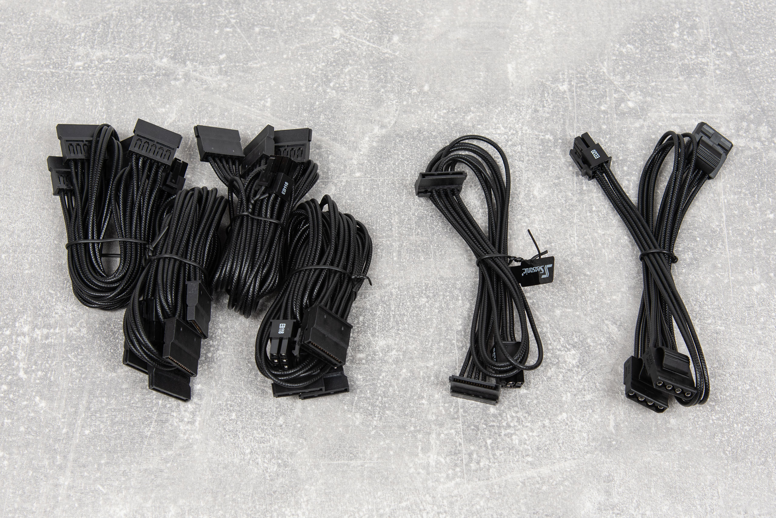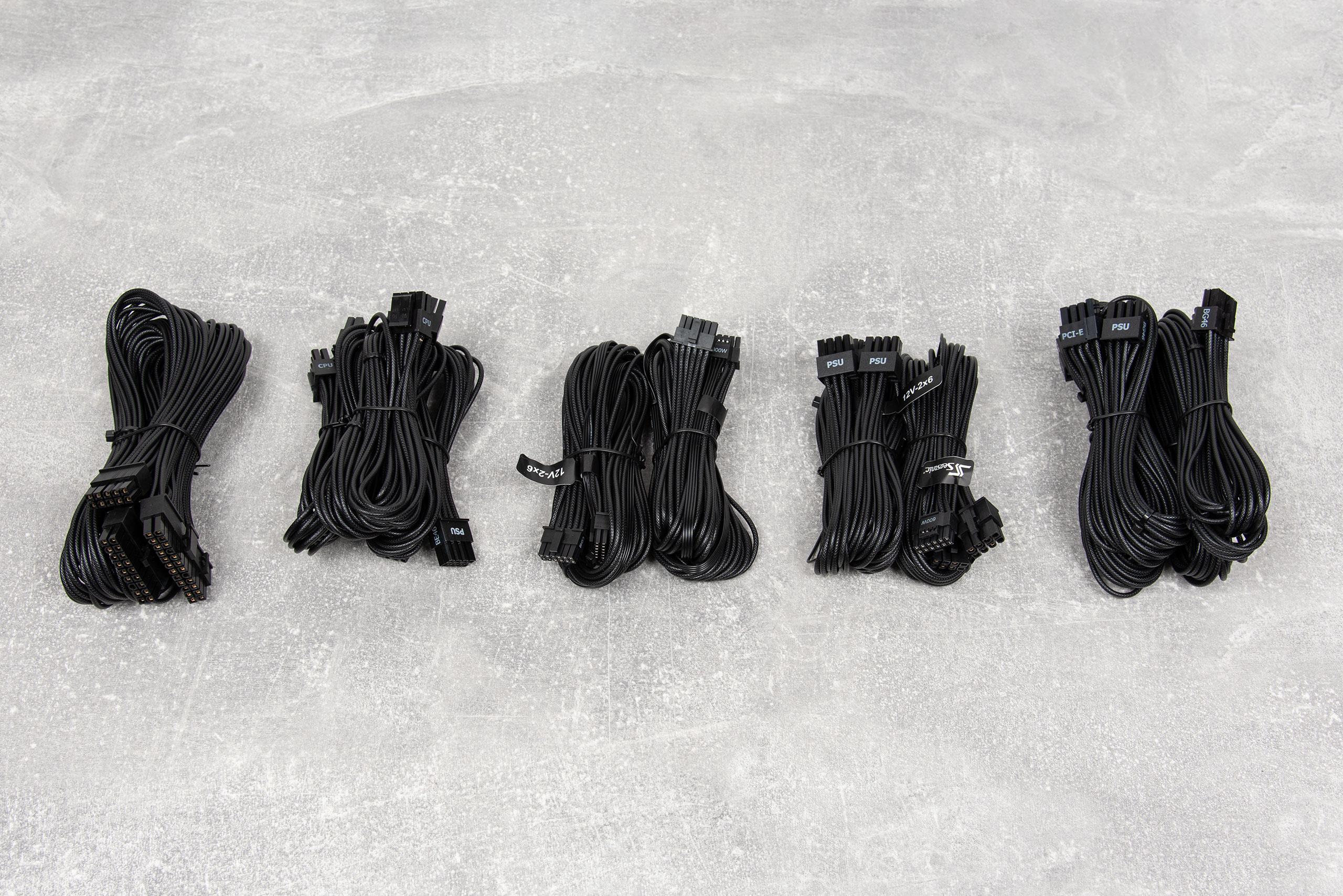 Кабели выполнены из проводов в индивидуальной изоляции черного цвета. Кабели достаточно длинные, их хватит для аккуратной укладки в больших корпусах.