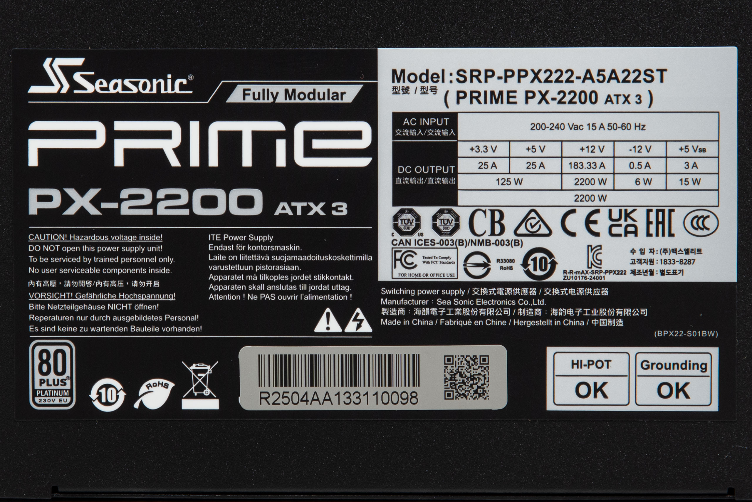 Seasonic PRIME PX-2200 ATX 3 (SRP-PPX222-A5A22ST)