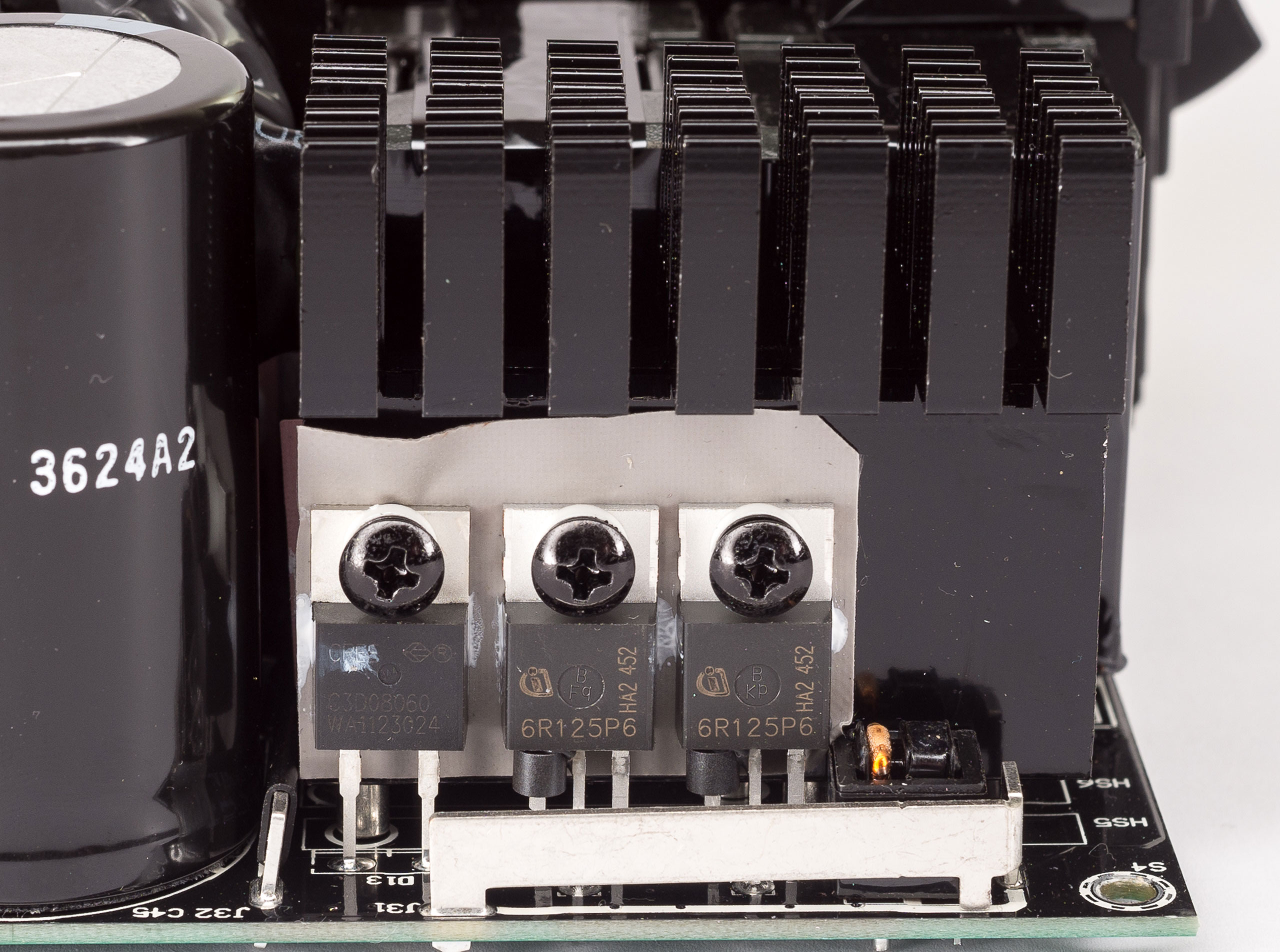 Высоковольтный фильтр выполнен на трех электролитических конденсаторах емкостью 820 мкФ и рабочим напряжением 420 В (105 °C) производства фирмы Rubycon. Общая емкость фильтра составляет 2460 мкФ.