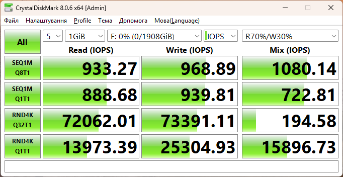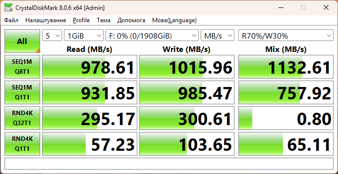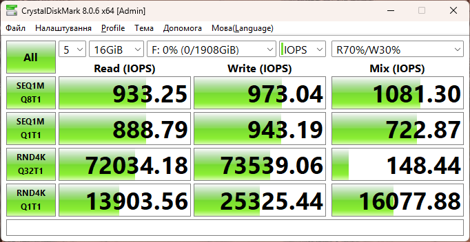 - CrystalDiskMark 8.0.6 x64;