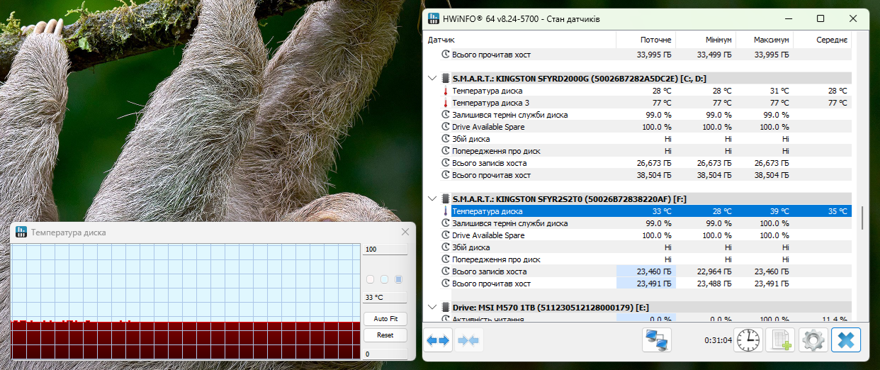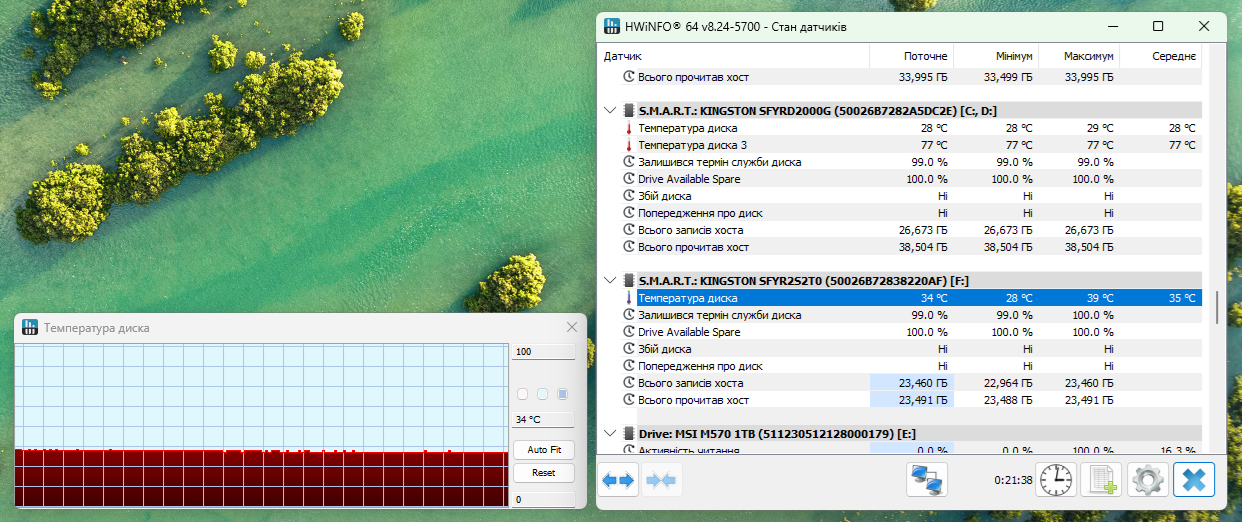 Уровень нагрева SSD