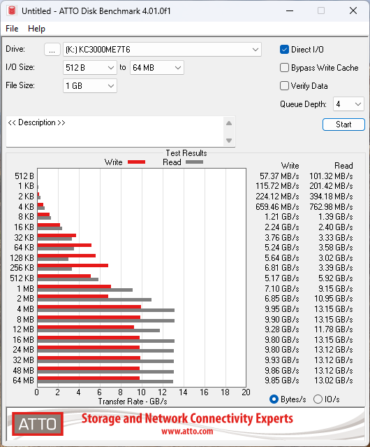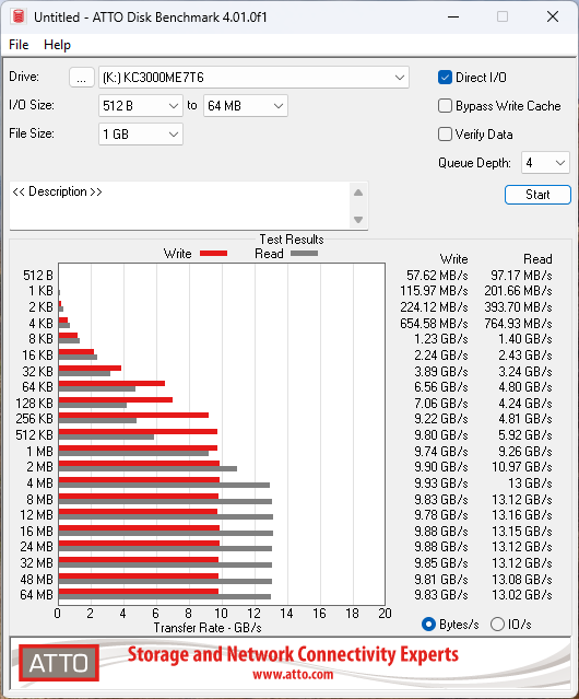 - ATTO Disk Benchmark v4.1.0.0;