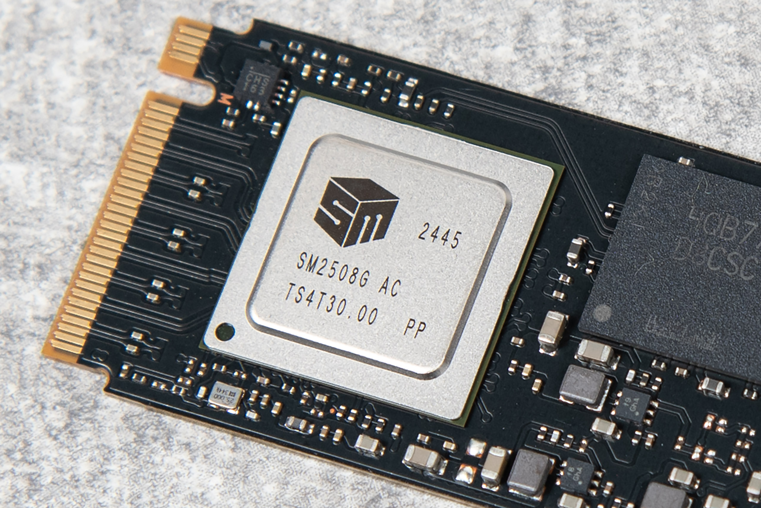 Восьмиканальный контроллер Silicon Motion SM2508 выполнен по 6‑нм техпроцессу, имеет четыре ядра ARM Cortex R8, одно ARM Cortex M0 и работает на частоте 1250 МГц. Он установлен сразу возле разъема M.2.
