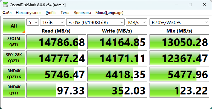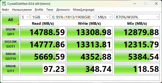 Переходим к обычным бенчмаркам. Первые скриншоты сделаны с пустым накопителем, следующие — с заполненным до 95%.