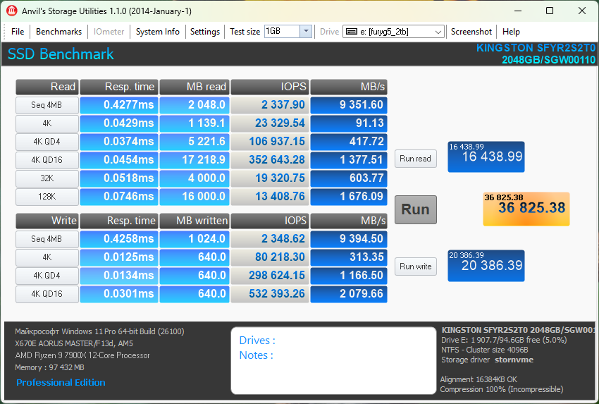 - накопитель №1: Kingston Fury Renegade 2TB;