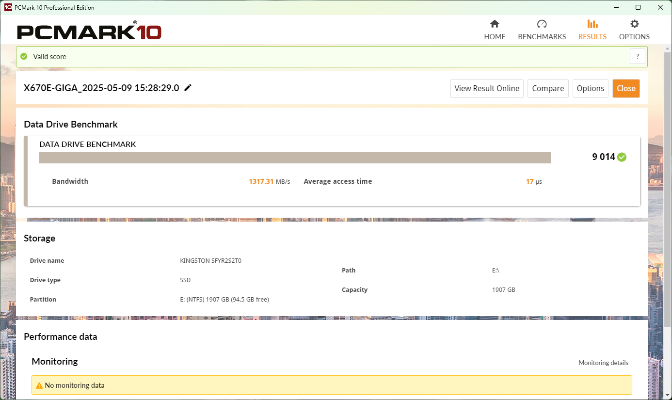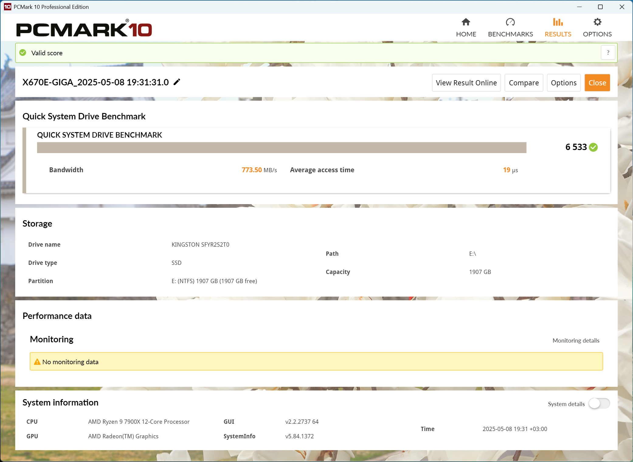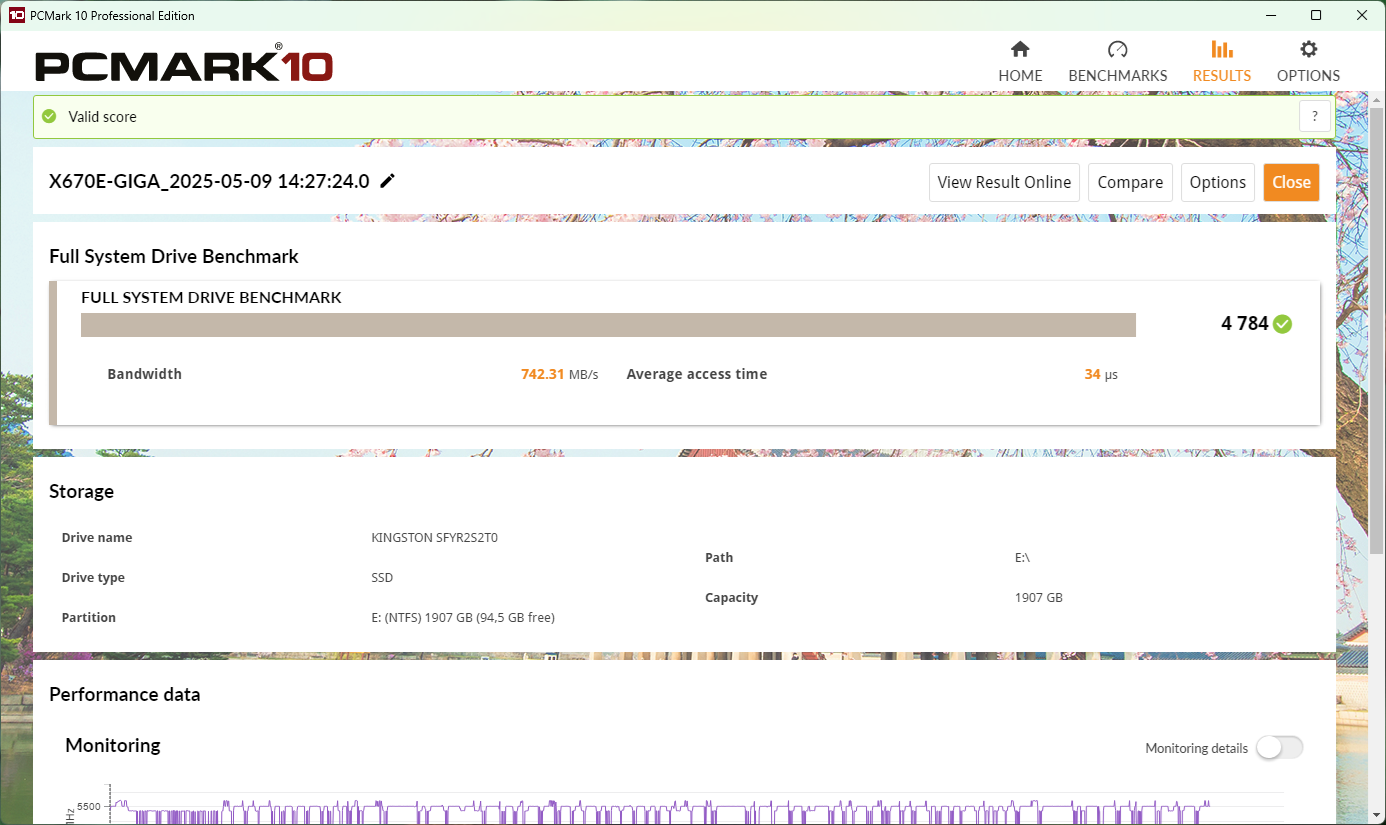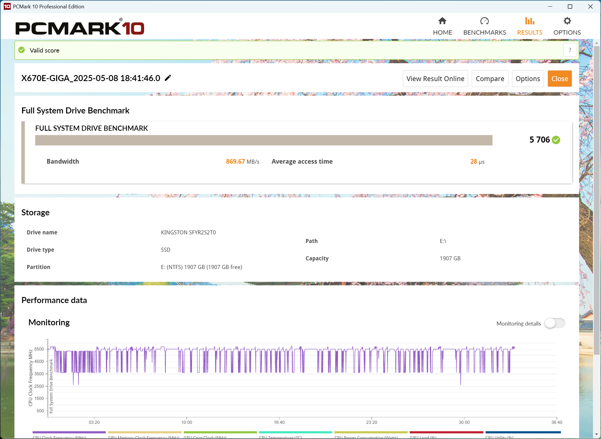 Что ж, результат просто замечательный, без единого радиатора при максимальной нагрузке накопитель нагрелся лишь до 59 °C при 20 градусах в помещении. На Phison PS5026-E26 такой результат был достижим лишь с большим радиатором на базе тепловых трубок.