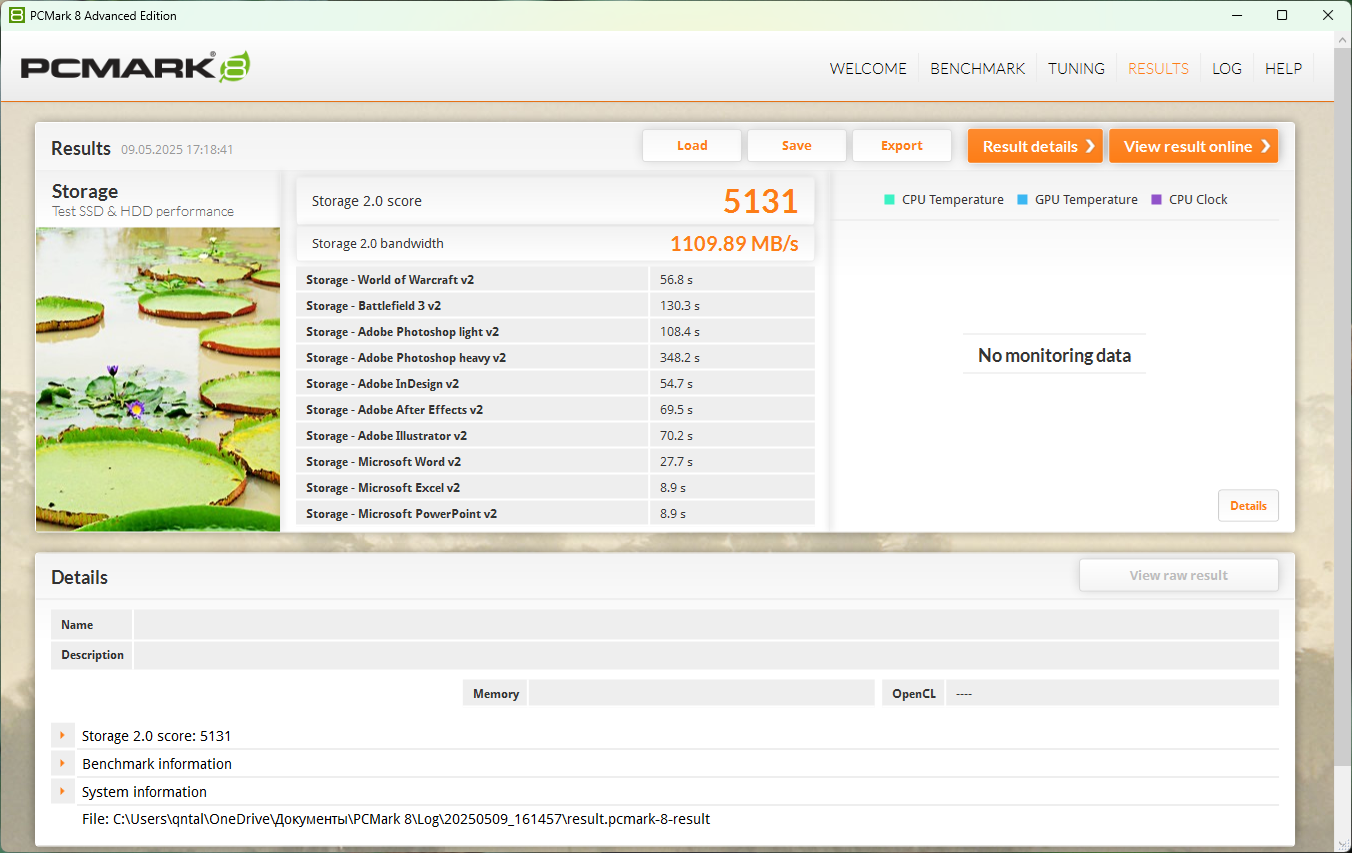 А вот здесь вообще нет никакой разницы в каком состоянии SSD — объем задачи не настолько велик, чтобы влиять на результат.