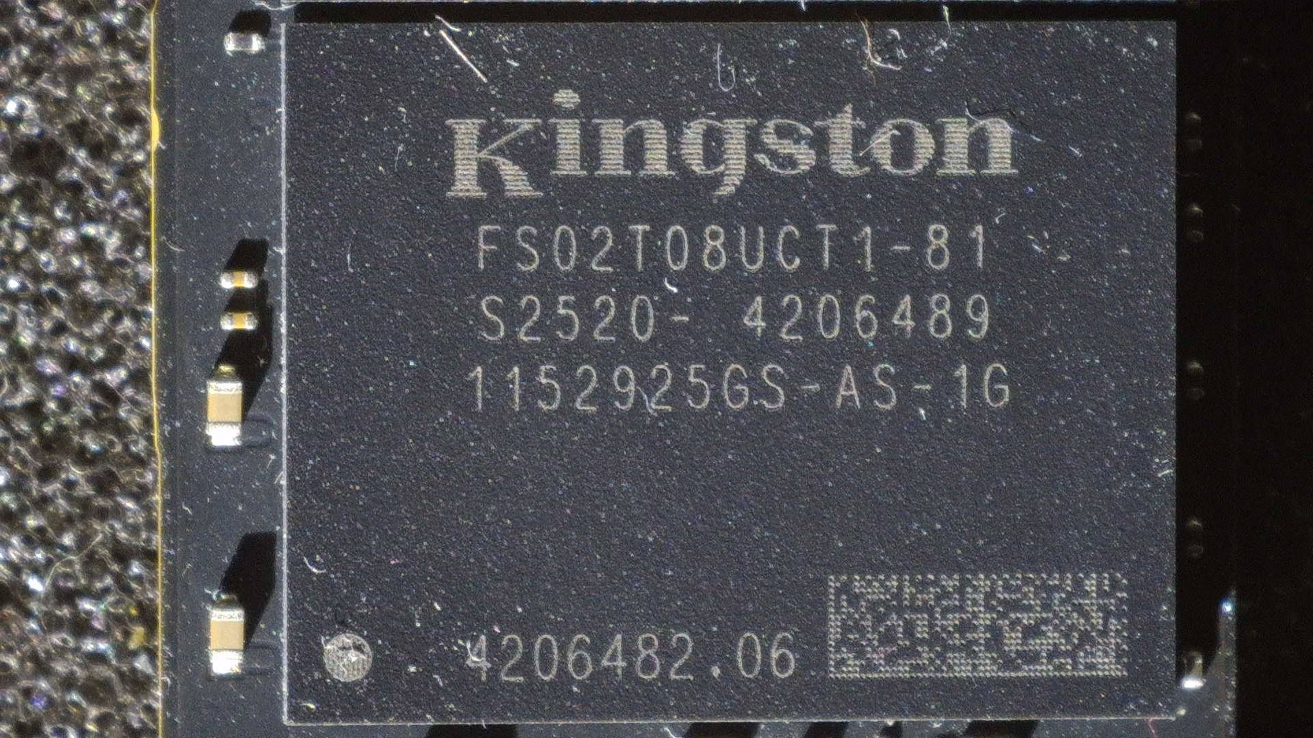 Память 3D NAND TLC набрана четырьмя банками Kingston FS02T08UCT1-81, скрывающими под собой 218-слойные Kioxia BiCS8.