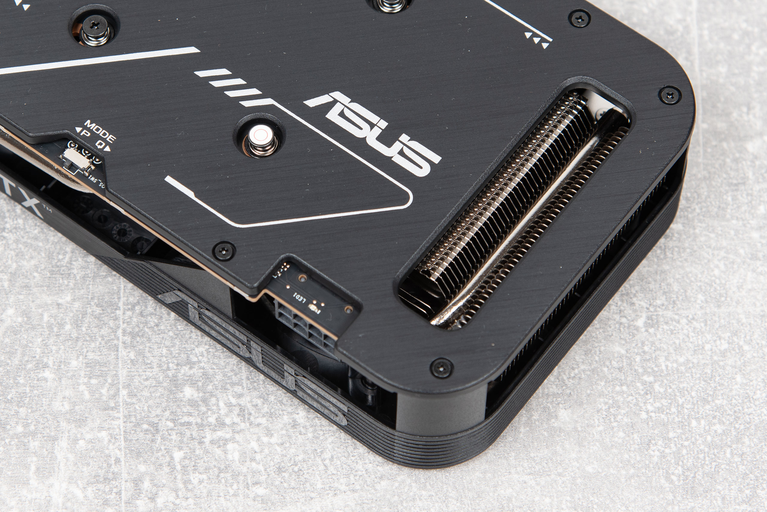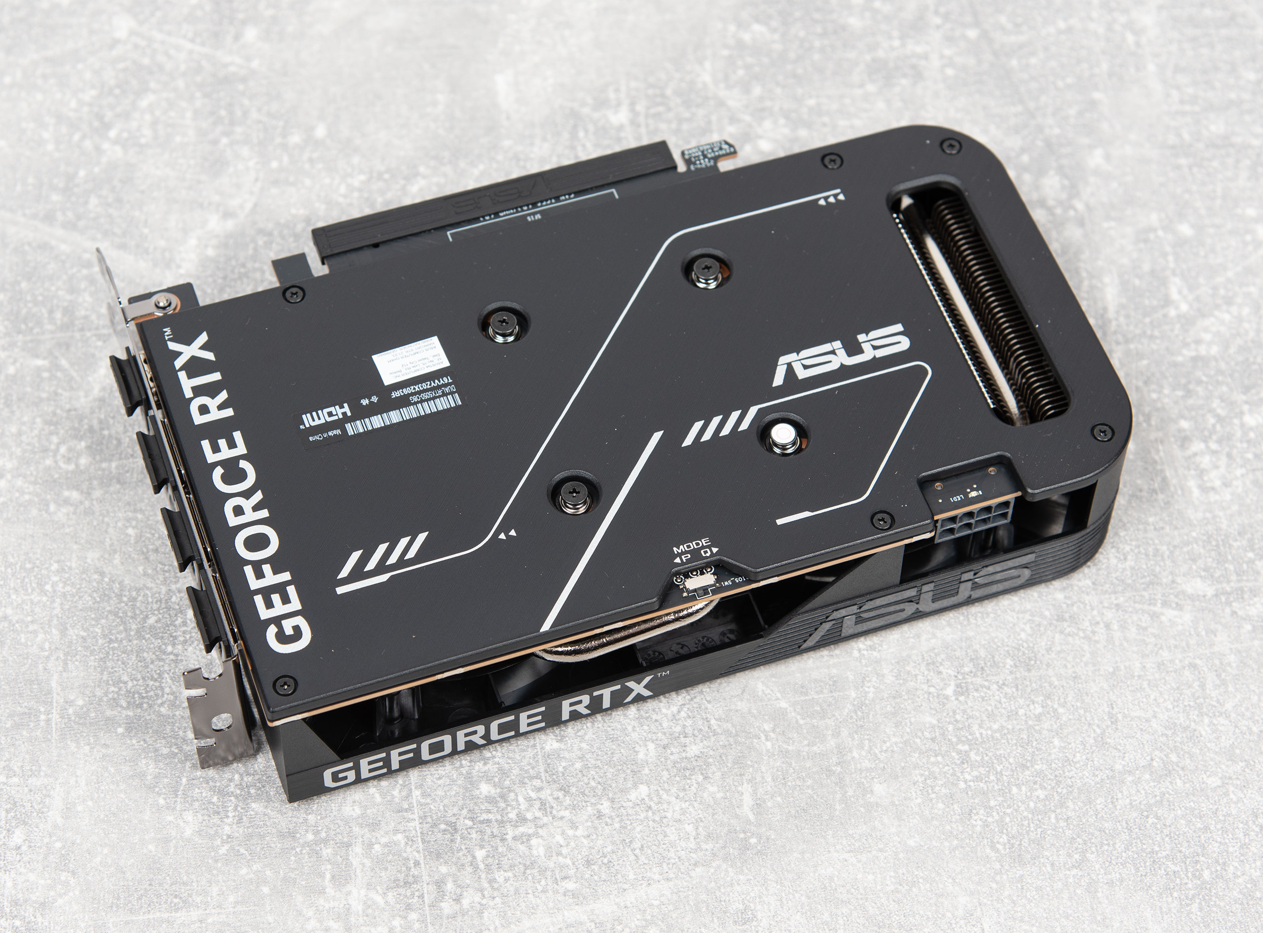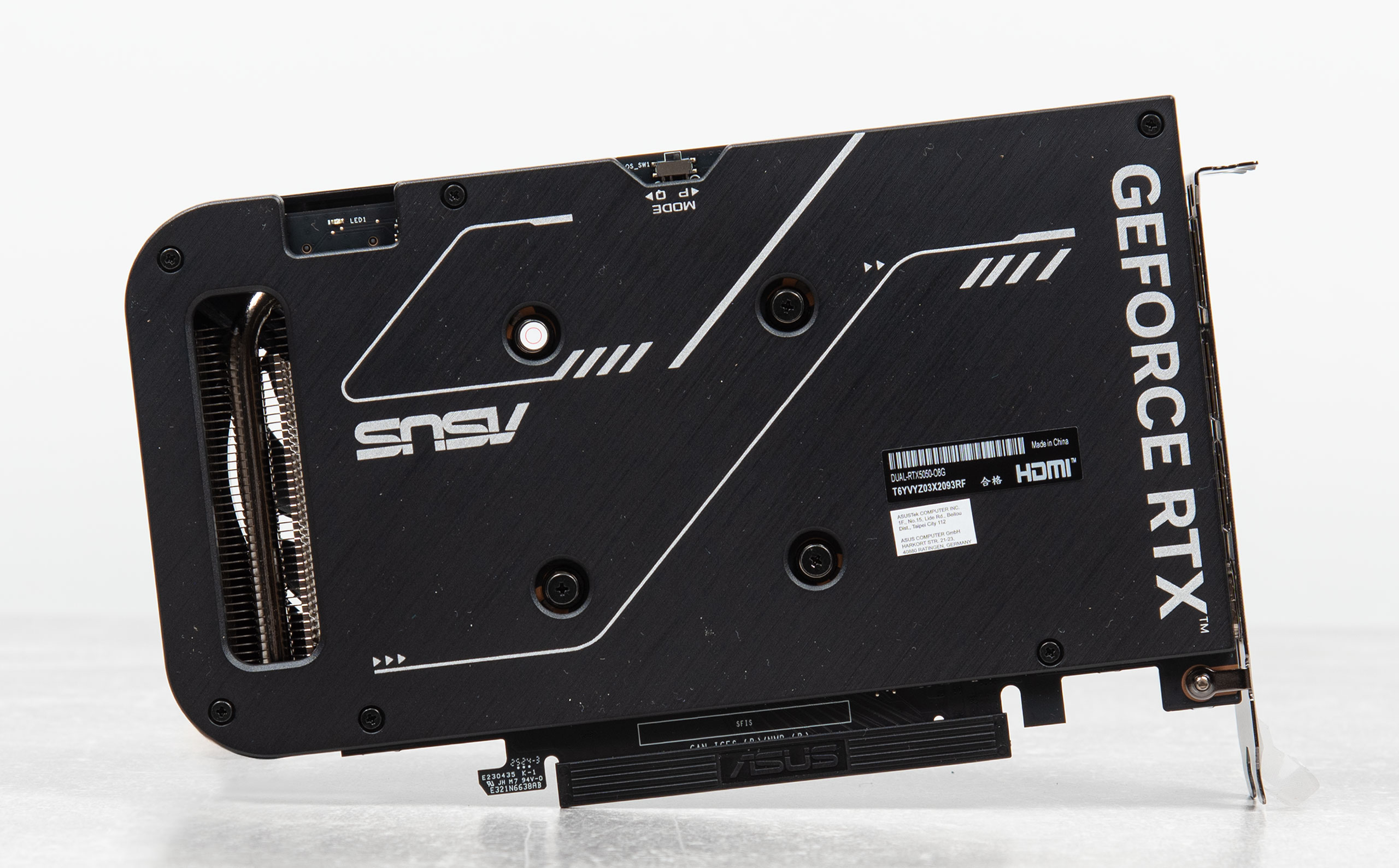 Несмотря на относительную доступность DUAL-RTX5050-O8G о тихом и производительном режиме работы карты не забыли, соответствующий переключатель находится на обратной стороне.
