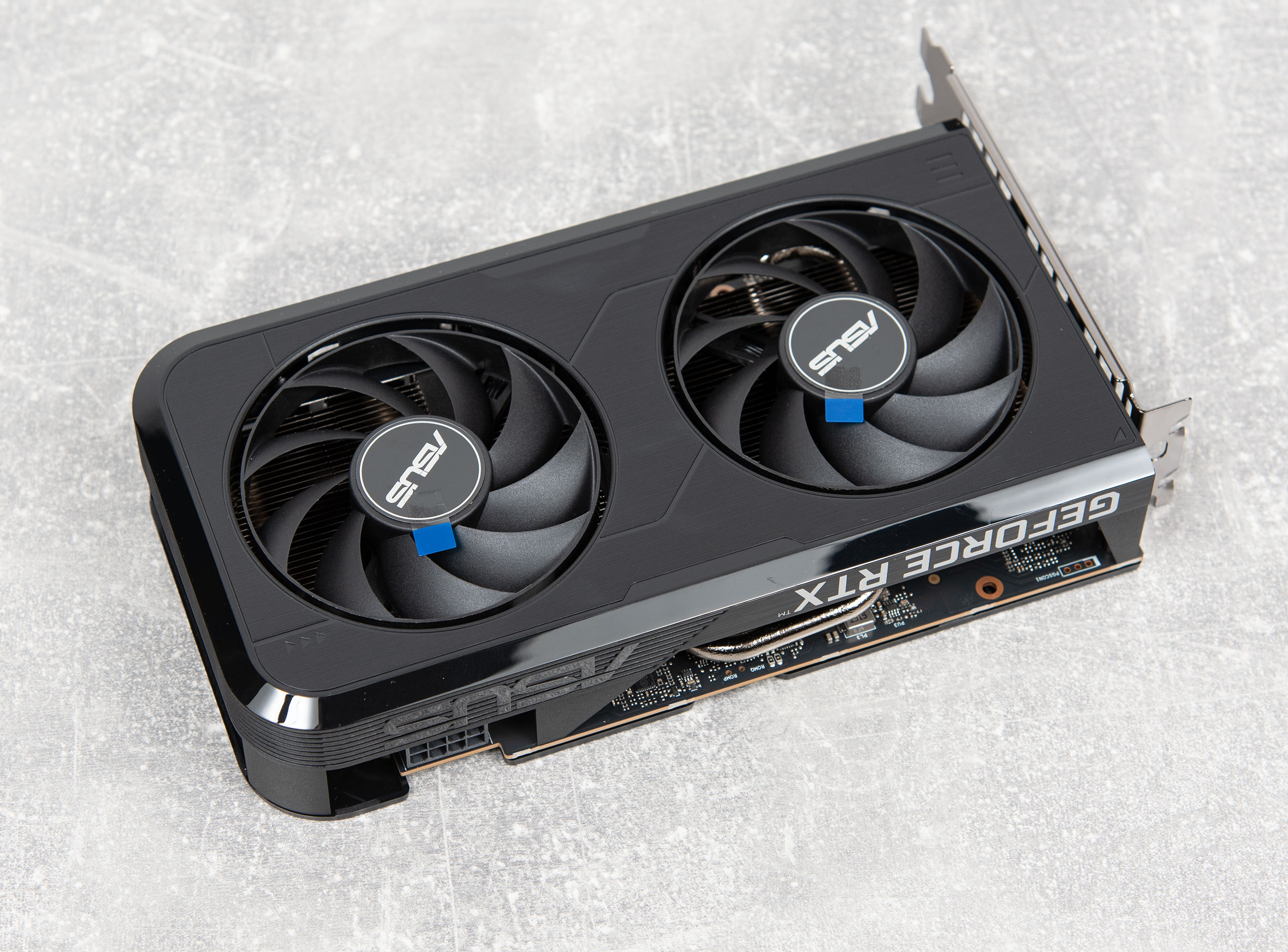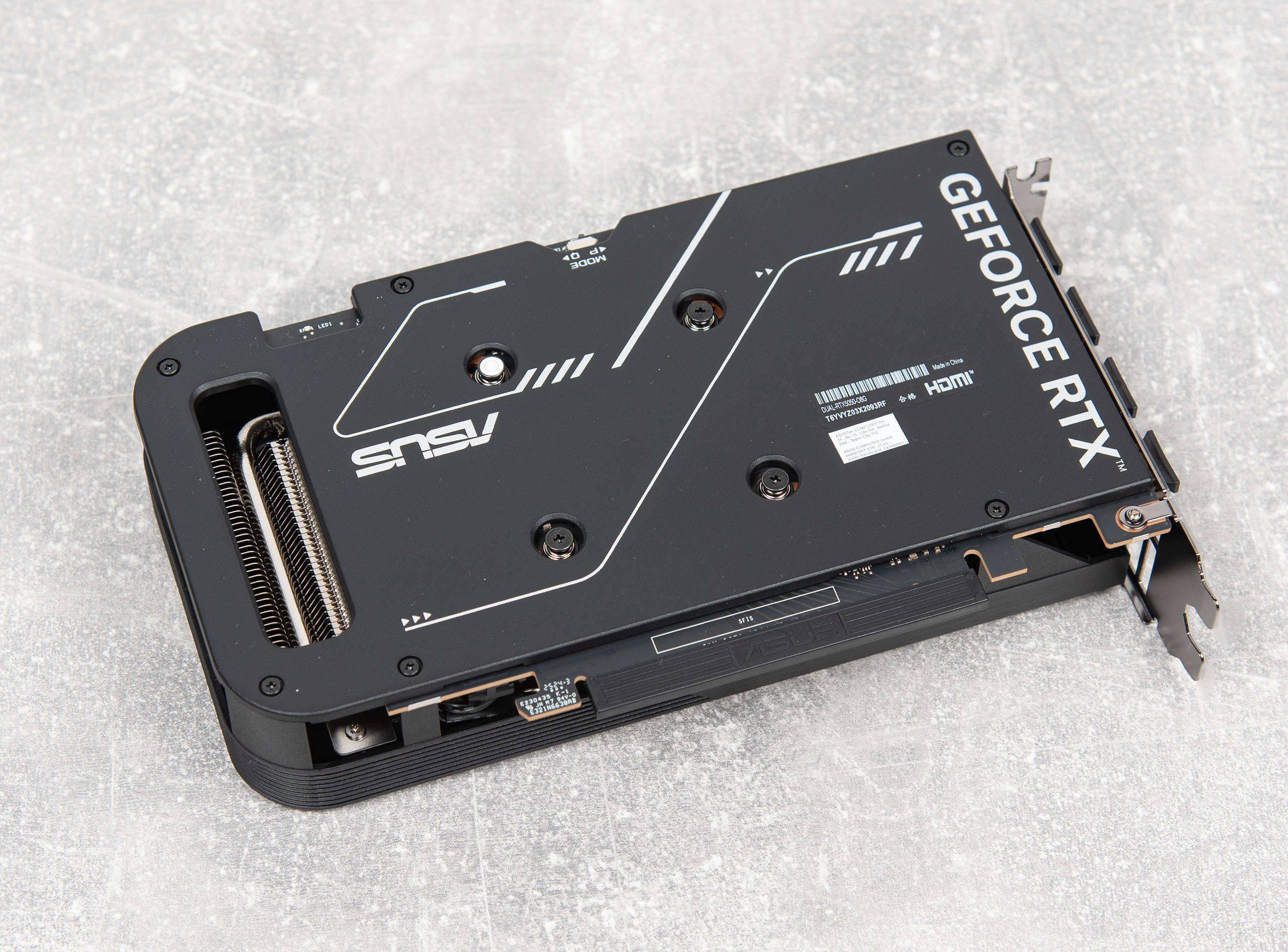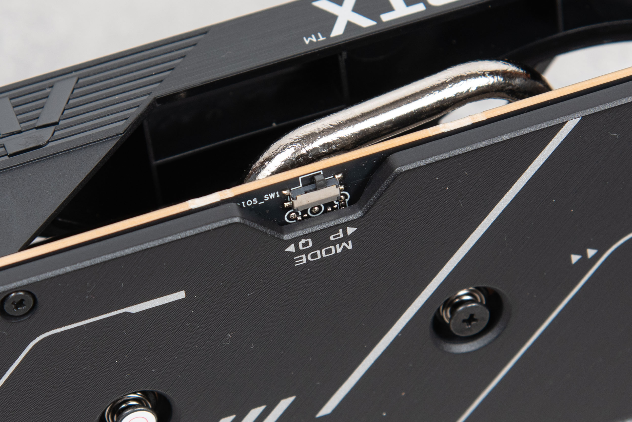 Несмотря на относительную доступность DUAL-RTX5050-O8G о тихом и производительном режиме работы карты не забыли, соответствующий переключатель находится на обратной стороне.