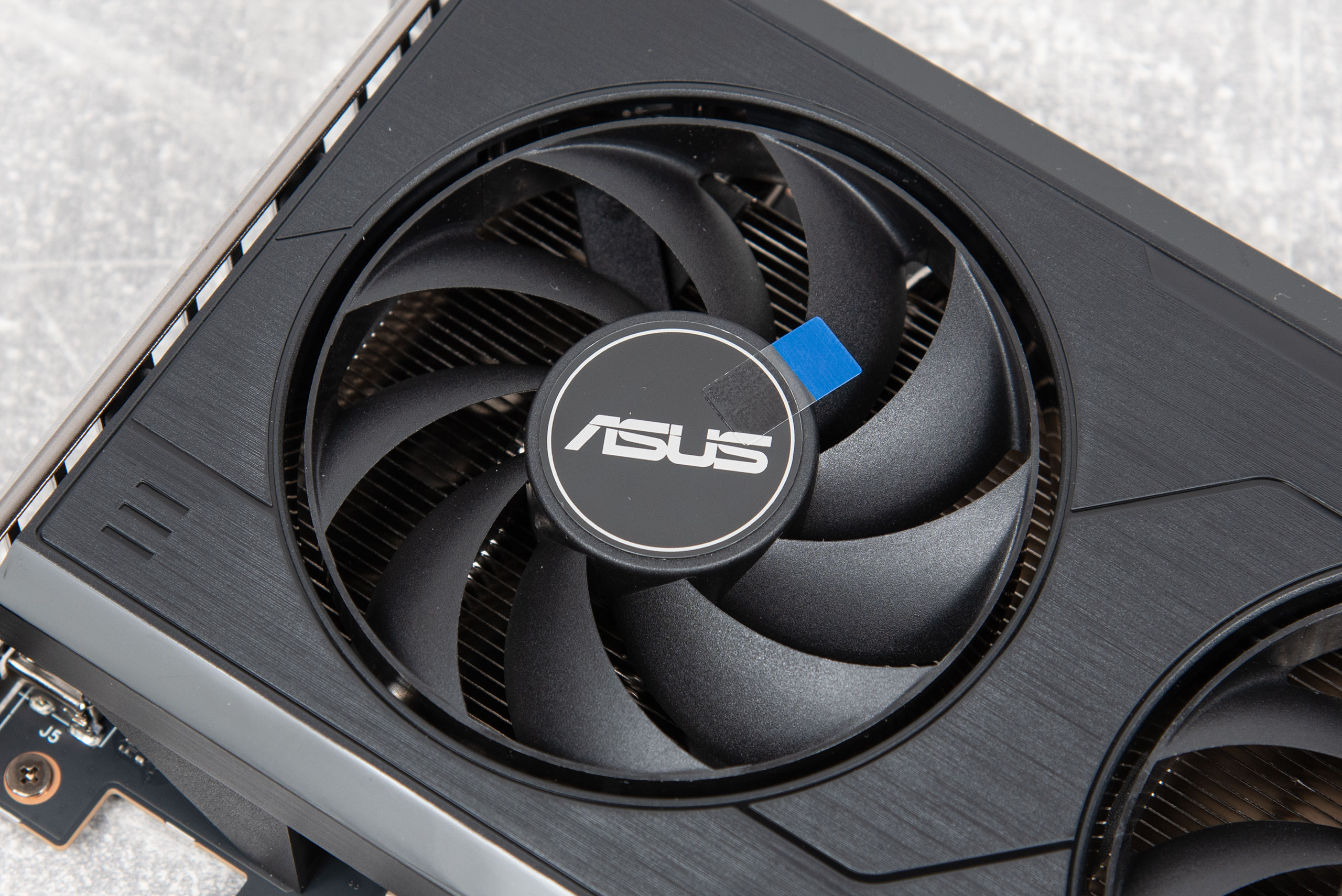Охлаждается графический адаптер двумя вентиляторами Axial-Tech с диаметром крыльчатки 75 мм и двойными шариковыми подшипниками. Количество лопастей у них составляет девять штук, все они объединены кольцом на концах. Присутствует полупассивный режим работы, когда при малой нагрузке на карту вентиляторы не вращаются и начинают работать лишь после нагрева чипа до определенной температуры (обычно 55 градусов). С открытым корпусом и при температуре в помещении 22 градуса их скорость достигает 2000 об/мин, что довольно сильно влияет на уровень шума. С другой стороны, серия Dual никогда не была примером для подражания, так что ожидать от этой карты тихой работы не следует.