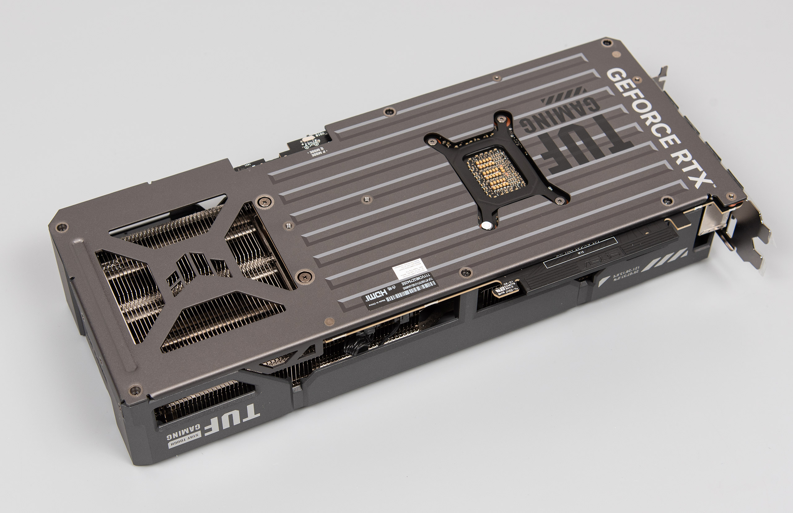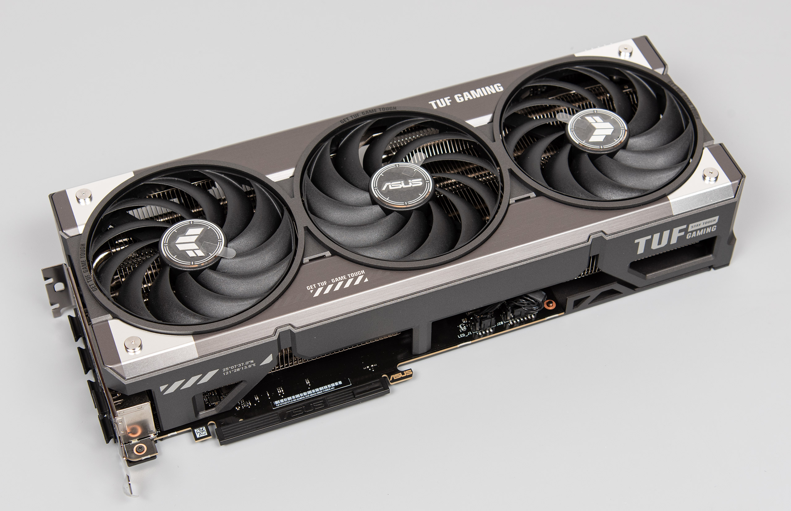 Дизайн видеокарты соответствует современной серии TUF Gaming и в отличие от прошлого поколения уже не такой брутальный. Благодаря декоративным элементам он даже напоминает стиль корпусов начала 2000‑х, когда индустрия начала отходить от цвета слоновой кости.