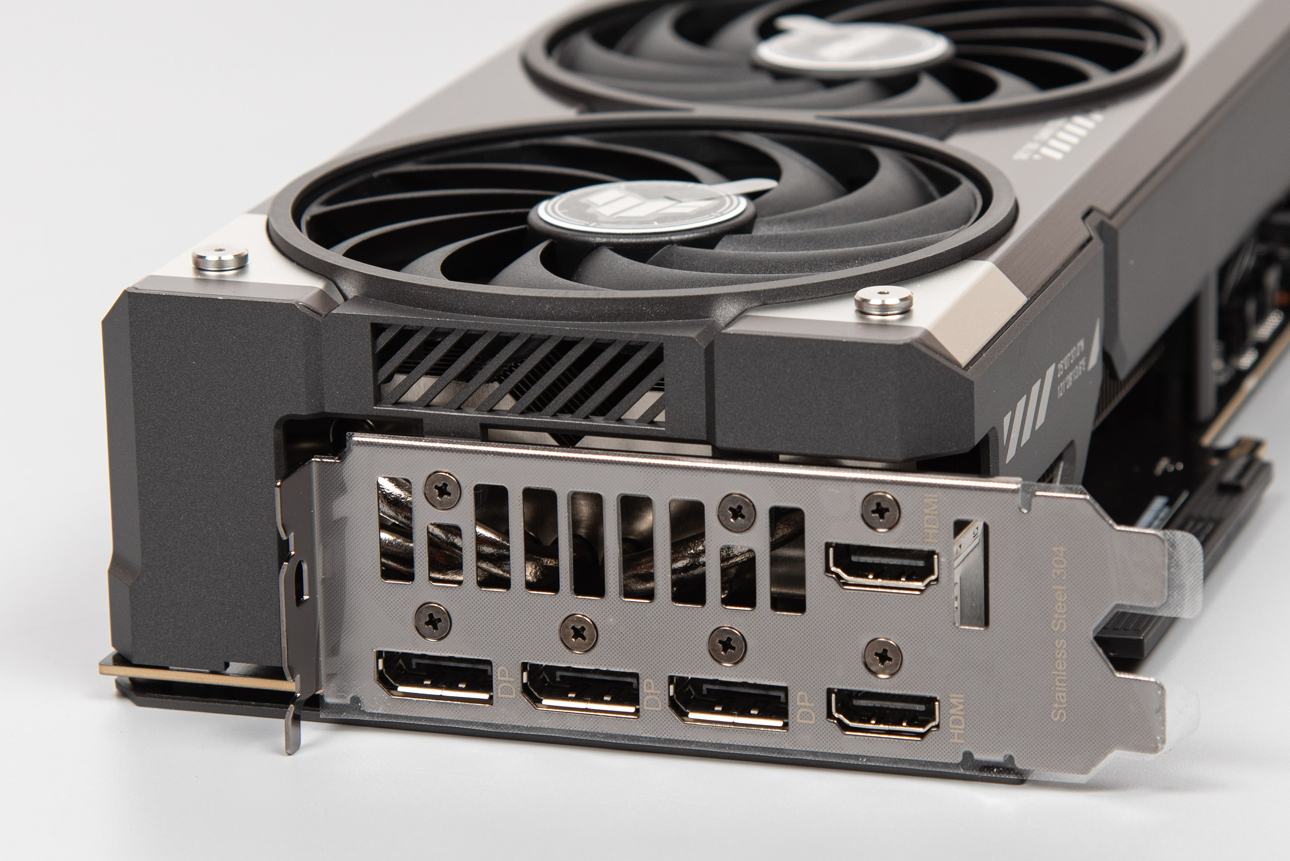 Для подключения мониторов предусмотрено три разъема DisplayPort 2.1b и два HDMI 2.1b, что делает карту более привлекательной для пользователей дисплеев с портом HDMI. Толщина адаптера составляет 3,25 слота, что подойдет не для каждого маленького корпуса. На внутреннем торце расположены отверстия с резьбой для установки дополнительных принадлежностей вроде ручек или стоек.