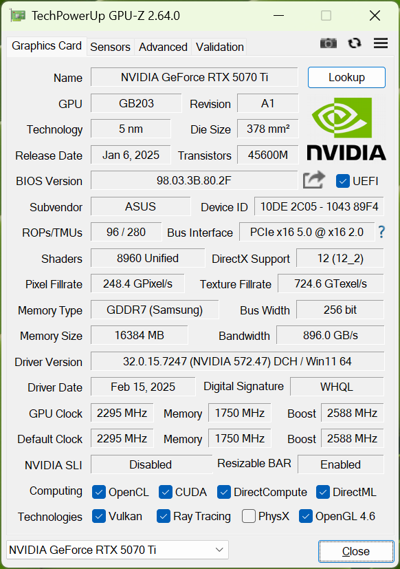 | Модель и страница продукта | TUF-RTX5070TI-O16G-GAMING |