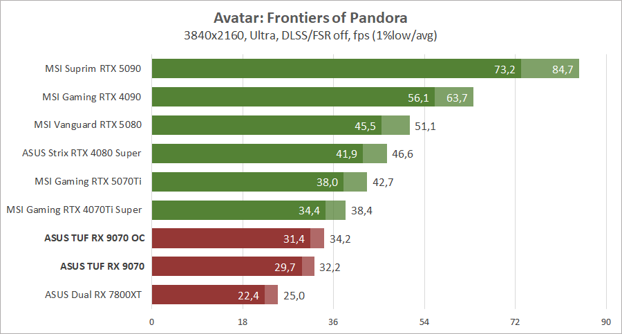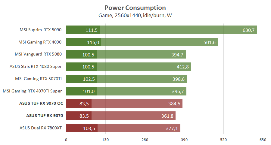 | Видеоадаптер | Radeon RX 9070 XT | Radeon RX 9070 | Radeon RX 7900 XTX | Radeon RX 7900 XT | Radeon RX 7900 GRE | Radeon RX 7800 XT |