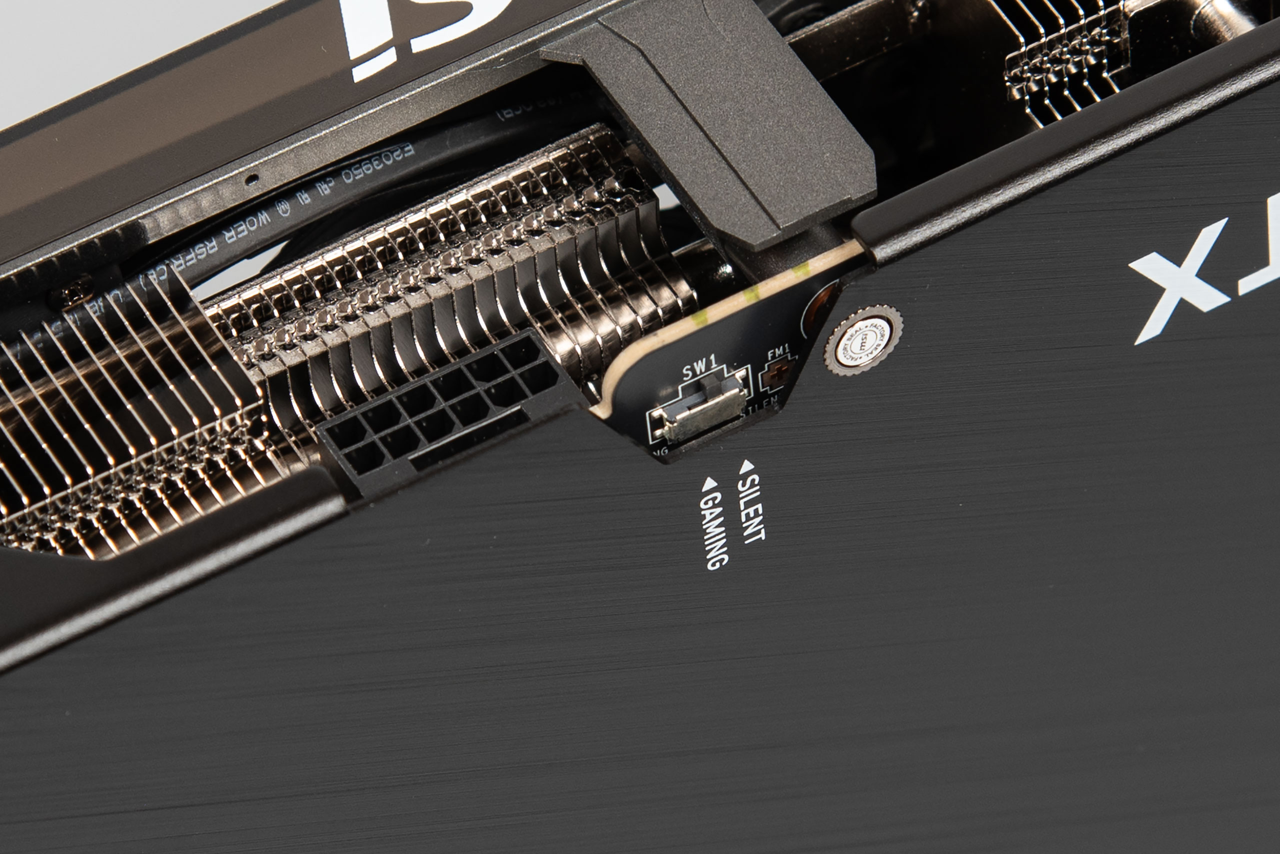 Для питания карты используется улучшенный 12-контактный разъем, рядом с которым на обратной стороне располагается переключатель для установки режима работы устройства — тихого или игрового.