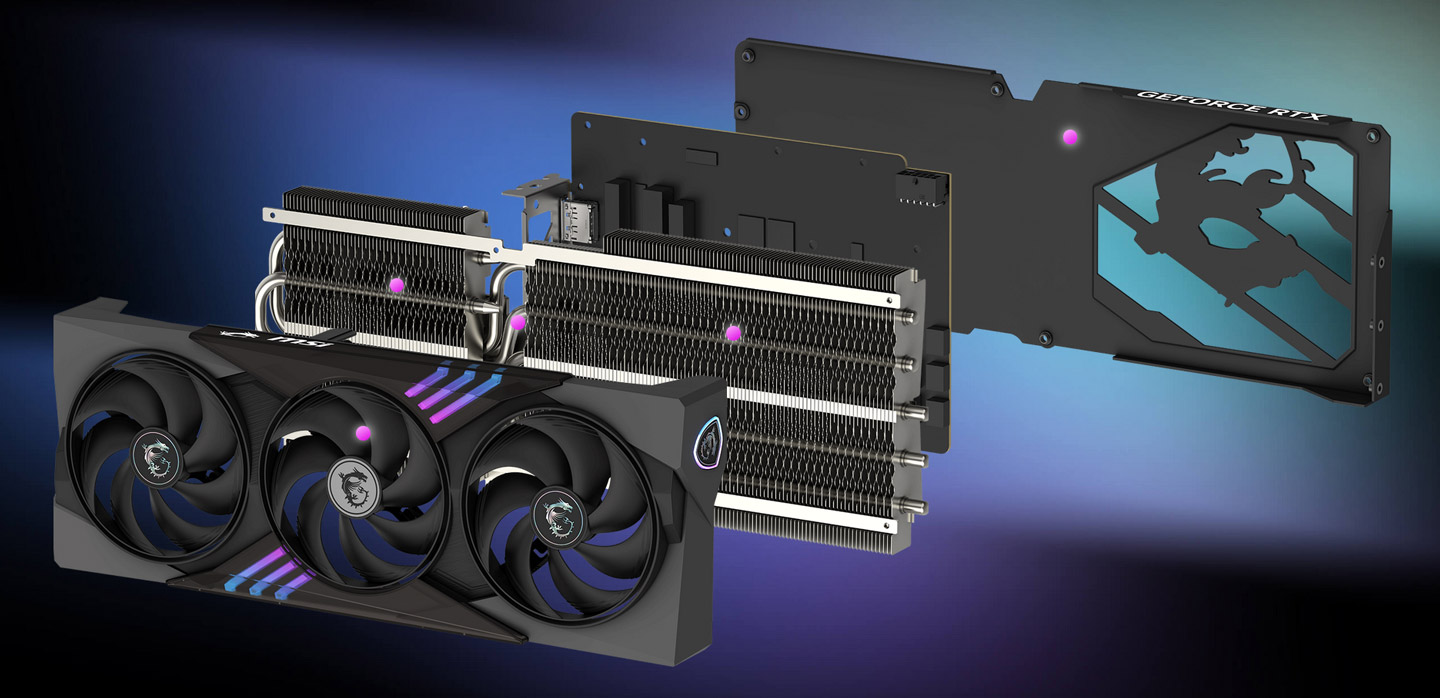 Графический адаптер принадлежит к серии Gaming Trio, так что общие черты предшественников сохранились, только вставки с RGB-подсветкой теперь накрываются полупрозрачными крышками. Такое небольшое обновление немного освежило дизайн линейки, которая в активе компании уже много лет была лишена кардинальных изменений.