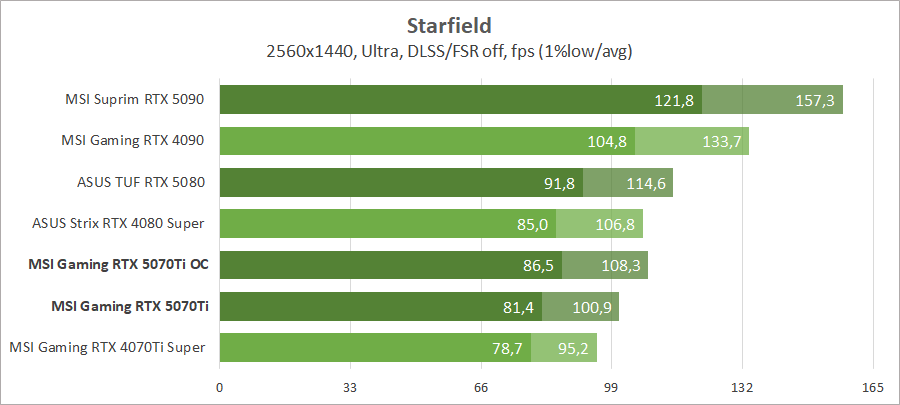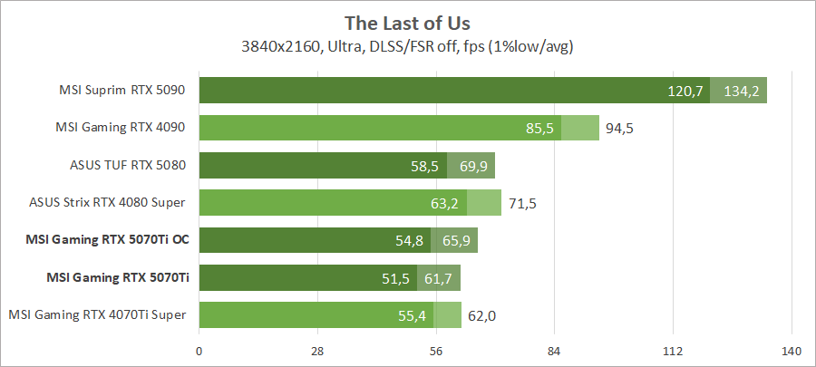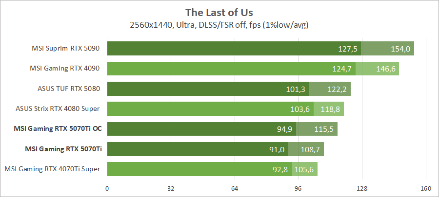 Для сравнения возьмем видеокарты MSI GeForce RTX 5090 Suprim SOC, ASUS TUF-RTX5080-O16G-GAMING, MSI GeForce RTX 4090 Gaming X Trio, ASUS ROG-STRIX-RTX4080S-O16G-WHITE и MSI GeForce RTX 4070 Ti Super 16G Gaming Slim STALKER 2 Edition.
