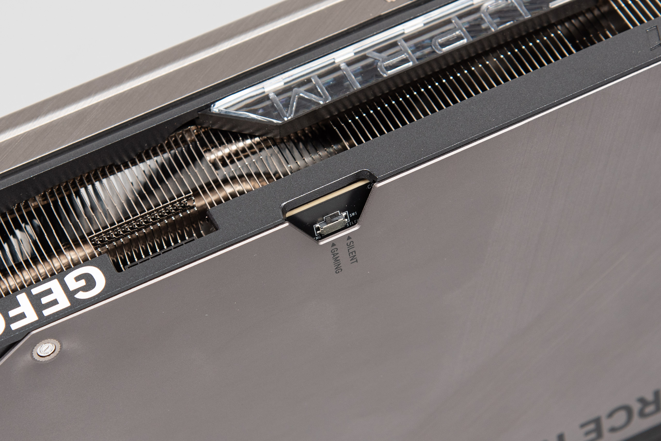 Если уровень шума не удовлетворит пользователя, он может переключить режим функционирования GeForce RTX 5090 Suprim SOC с игрового на тихий, для чего есть соответствующий переключатель на обратной стороне.