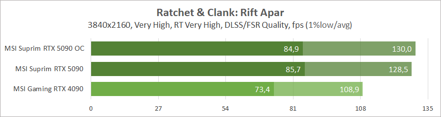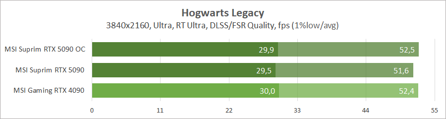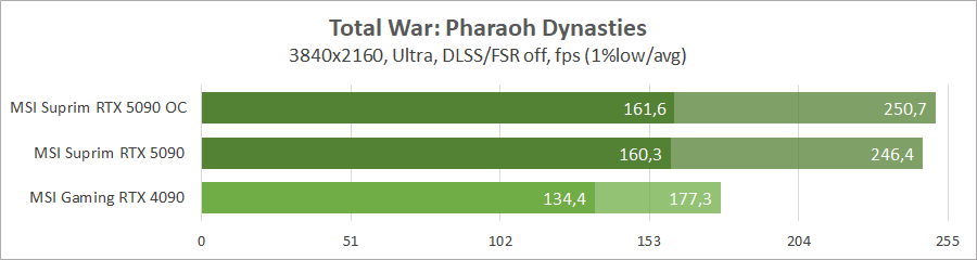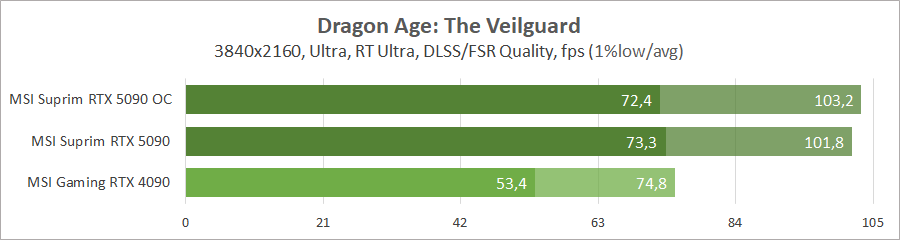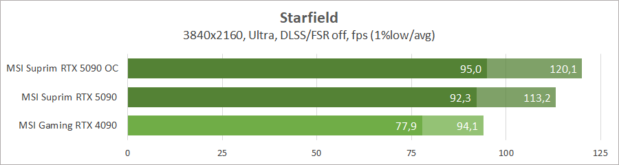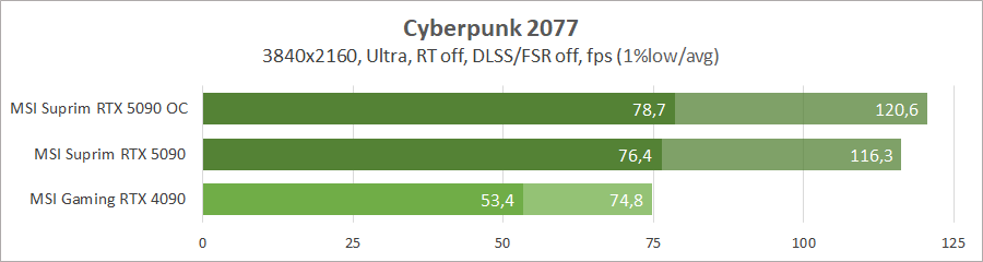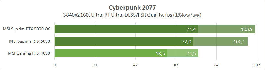Тестирование в игровых бенчмарках происходило при разрешении 3840x2160 с пресетами качества графики Ultra (Ultra High, Very High). Также были добавлены режимы с активированной, где это возможно, трассировкой лучей с технологией масштабирования в режиме «Качество». В играх, где не использовался стандартный бенчмарк, показатели фиксировались в следующих случаях: