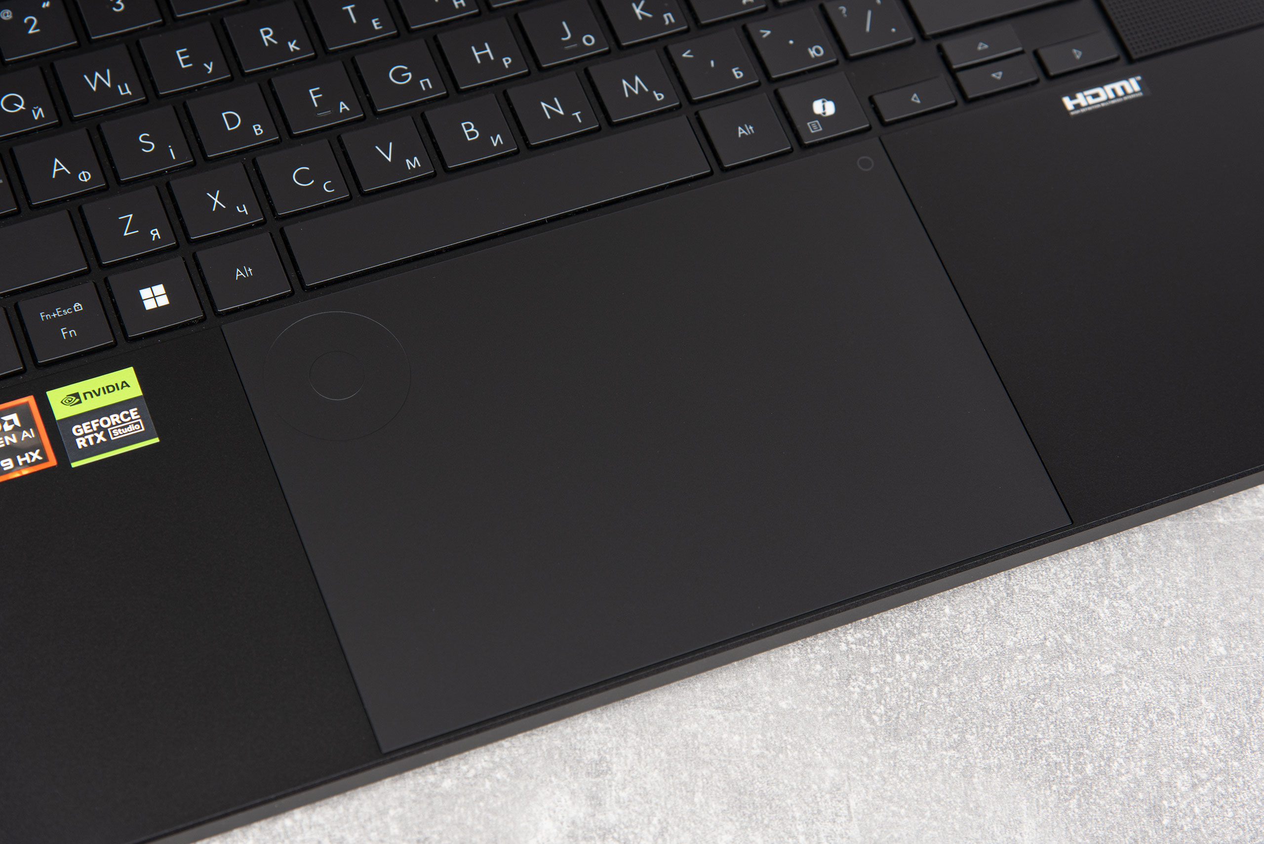 Среди других особенностей стоит отметить большой тачпад с сенсорной круговой панелью, на которую вынесено ряд дополнительных функций.
