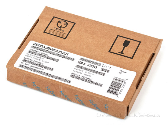 В розничную торговлю накопитель поставляется в небольшой красочной картонной коробке, её дизайн выполнен в едином для всех продуктов Intel стиле.