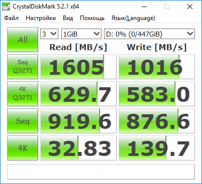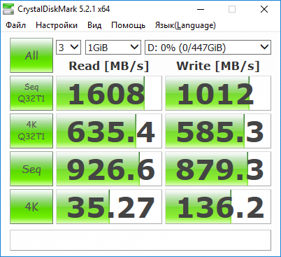 При имитации сценариев копирования разных типов файлов, скорость переноса данных у героя обзора составила от 495,99 до 926,51 Мбайт/с.