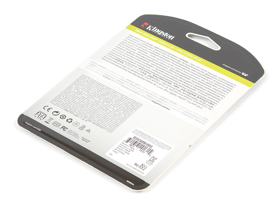 Ничего лишнего в комплекте нет. Дизайн испытуемого не отличается от других 2,5-дюймовых продуктов. Типичный твердотельный накопитель в металлическом корпусе серого цвета окраски. Вся основная информация о нем собрана на наклейке на лицевой части. Справа нанесена круглая гарантийная пломба.
