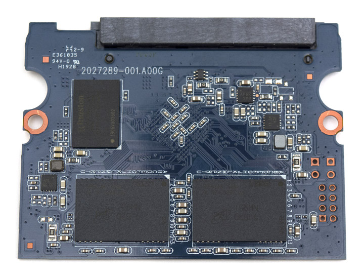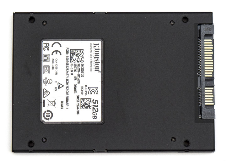 В основе накопителей КС600 лежит связка из четырёхканального контроллера Silicon Motion SM2259 и микросхем памяти 3D TLC NAND от Micron. Указанный объем в 512 гигабайт набран четырьмя чипами памяти, разместившимися по обе стороны платы.