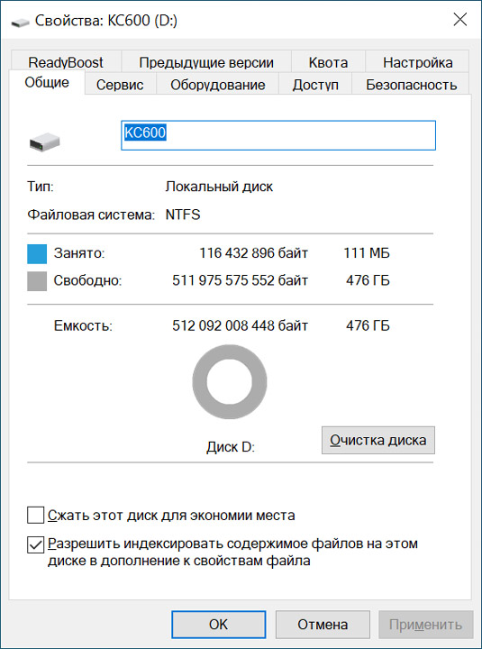 После форматирования накопителя пользователю станет доступно 476 гигабайт свободного пространства.