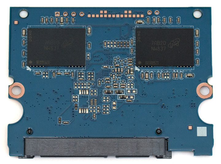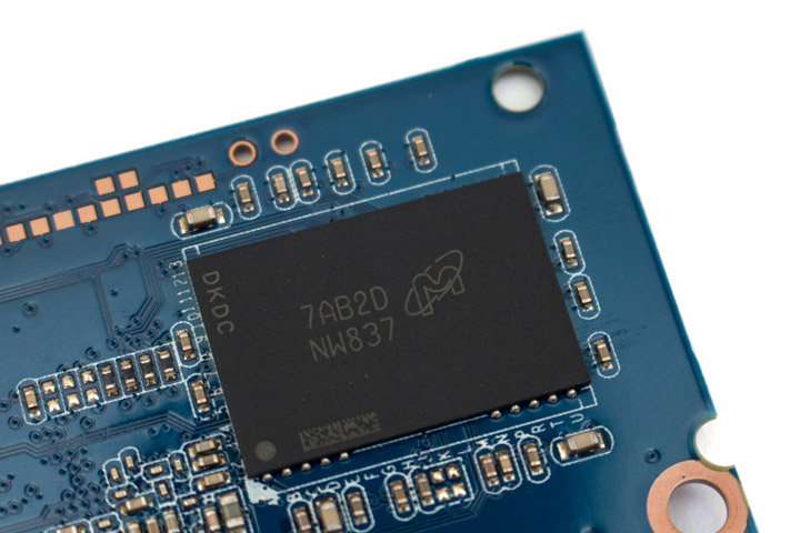 Например, если верить показаниям AIDA64, то мы имеем дело с флэш-памятью TLC NAND от Toshiba, произведенной по 15-нм техпроцессу. Фотография же ниже четко показывает, что на самом деле перед нами чипы памяти от Micron (маркировка 7AB2D NW838 и 7AB2D NW837). Данные чипы действительно относятся к заявленному типу TLC NAND и произведены по 15-нм техпроцессу, но фактическая скорость их работы отличается от той, что указана в спецификациях, о чем будет идти речь далее.