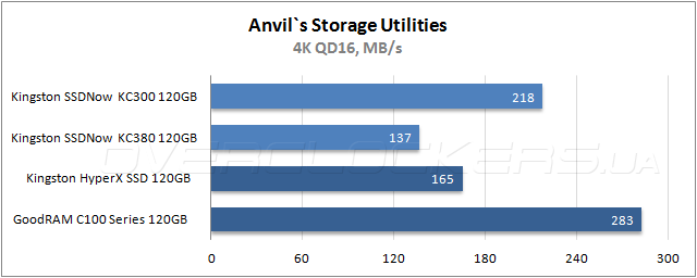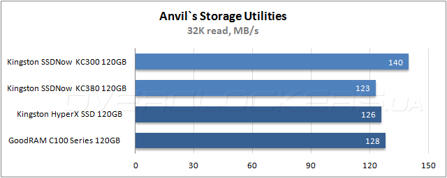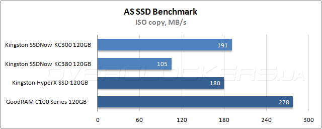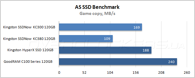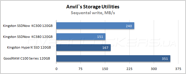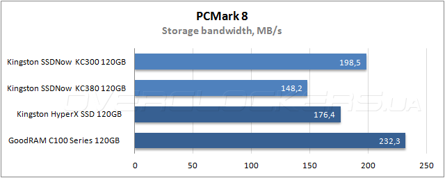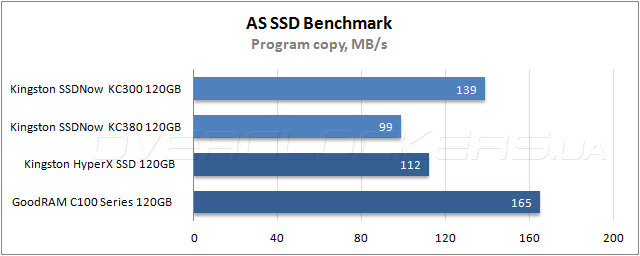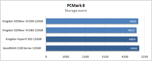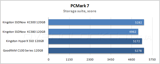 Если не брать во внимание результаты накопителя GoodRAM, то среди продуктов Kingston лучшим стал KC300, который занял второе место в двух тестах из трех. Что касается SSDNow KC380 120GB, то от устройства, предназначенного для установки в компактные экономичные системы, напрасно ждать рекордного быстродействия.