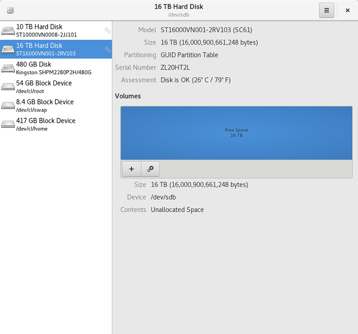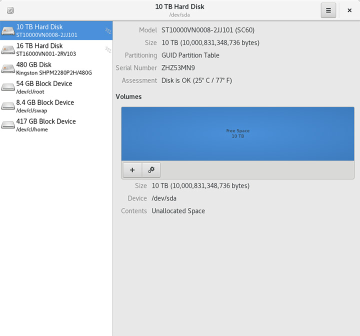 Переходим в суровый режим. Проверим каждый жесткий диск в CentOS 8. Оба накопителя имеют одиночный раздел на всю доступную область. Отформатированы в файловой системе ext4.