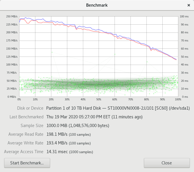 Старшая модель превосходит IronWolf 10TB примерно на 10% в линейном чтении.