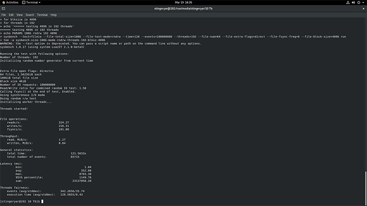 Замер температур осуществлялся при помощи программы HWMonitor, для стресс-теста использовалась нагрузка в виде сидирования/загрузки 50 торрентов одновременно в течении шести часов. Бенчмарки проходились при параметрах по умолчанию на указанных в графиках пресетах. Для демонстрации возможностей в использовании NAS/DC Sysbench эмулирует 192 потока одновременного 100% чтения/100% записи/чтения+записи на массиве из 64 файлов общим объемом 100 Гбайт (блок 4Кбайт).